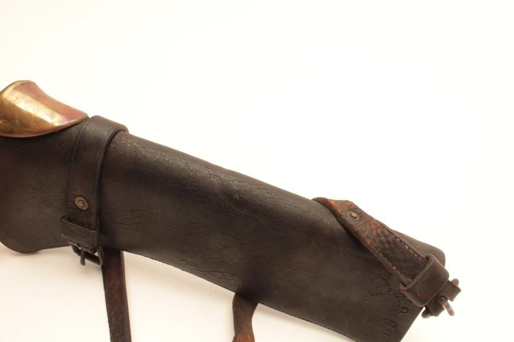 Early Civil or Indian Wars leather carbine scabbard with brass throat; overall good condition. Est.: $250-$500.