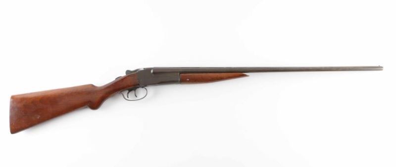 Eastern Arms is a trade name gun for Sears Roebuck when they used to sell firearms. It's hard to put a year or manufacture on this gun. Maybe J. Stevens or Iver Johnson. The barrels and receiver are in good shape and have mostly a patina with some surface rust along parts of the barrels. The wood stock and forend still have been refinished at some point. The forend has a crack where it meets the receiver and someone ran a bolt through to a nut, then lacquered over it. The stock has 2 horizontal parallel cracks on the left, where it meets the receiver. Also at the wrist coming off the tang. There is a chip missing right top next to tang and a bigger chip off the toe, left side. There is no butt plate or recoil pad. The stock and forend have had work done. The bores look good just need cleaned. NRA Fair Modern Firearm