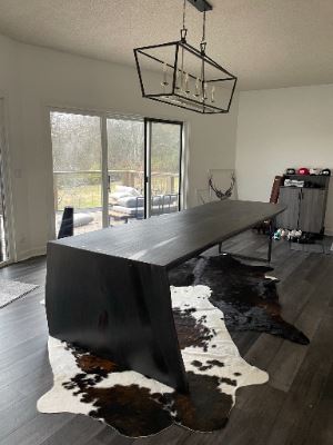 Built as both a functional centerpiece and an artistic statement, it bridges rustic authenticity with refined contemporary form—perfect for a grand dining space, boardroom, or showcase interior.
