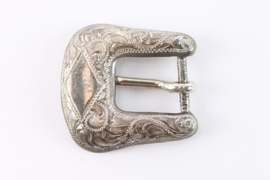Engraved traditional sterling, Maker marked "Bohlin Made Sterling Calif. Hollywood". Measures 1 1/2" by 1 1/2".