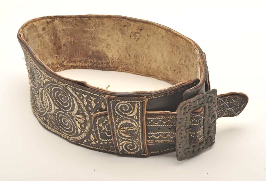 Eighteenth to Nineteenth Century wide buckled belt; Mexican or South American pitiado stitched. Est.: $150-$300.