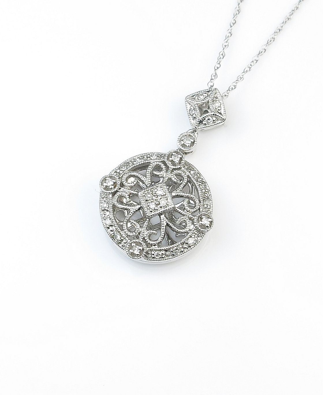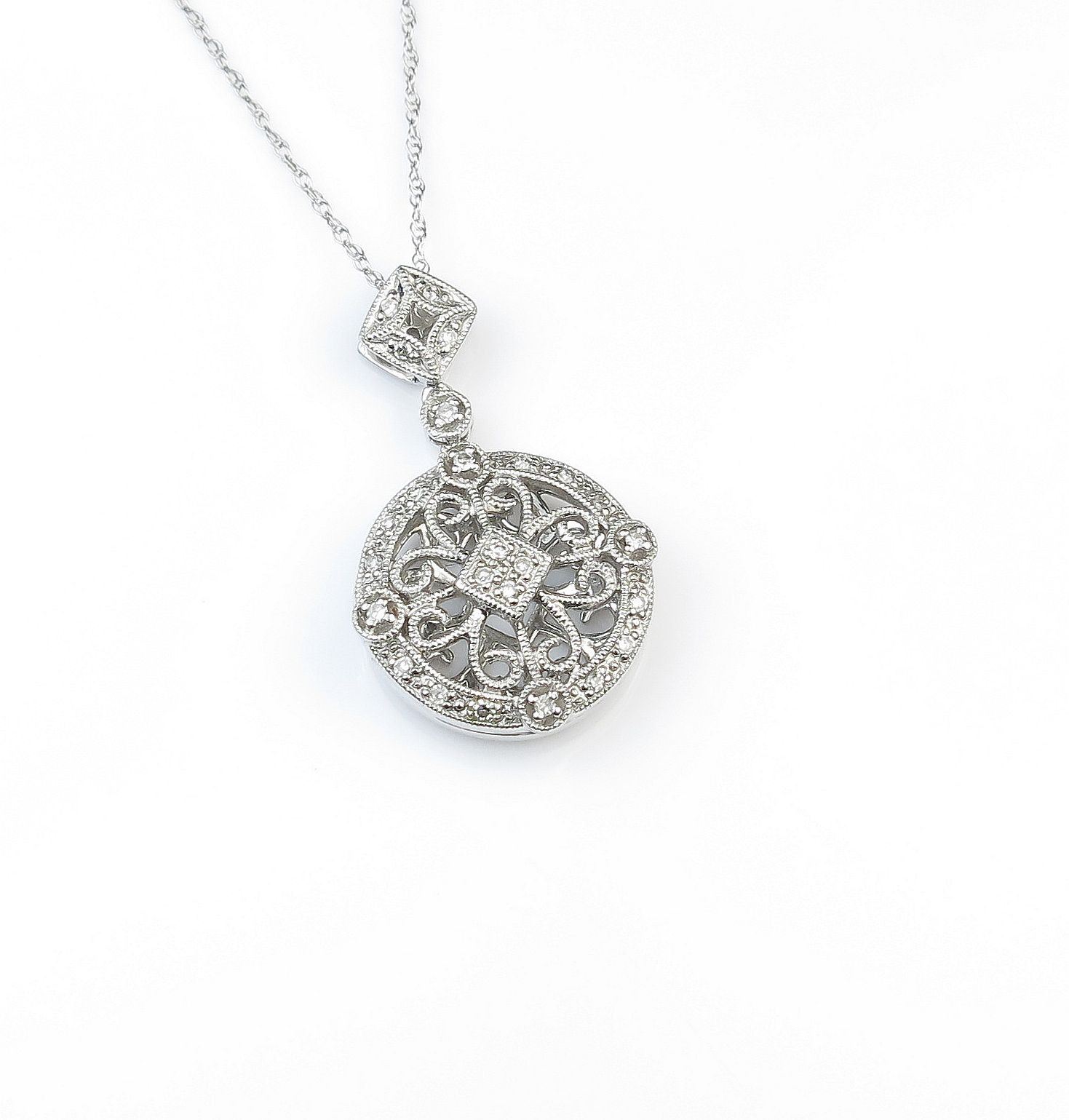 With Filigree Setting Accented With 25 Diamonds Set In 10 Karat White Gold.