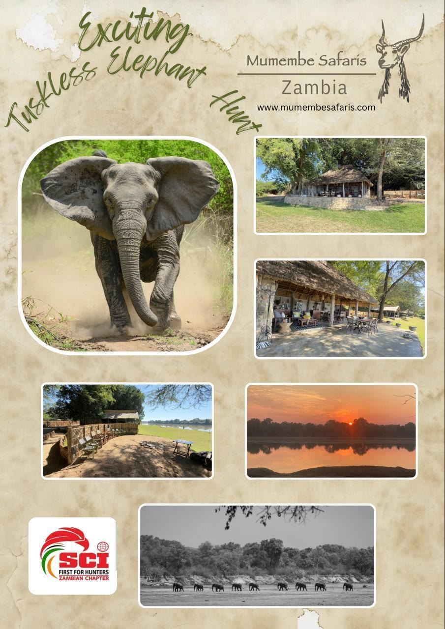 Mumembe Safaris - is proud to offer a 5-day, 1x1 guided hunt for One Tuskless Elephant in Chisomo GMA, Luangwa, Zambia, for one hunter. Method of take is rifle. Schedule the hunt with outfitter for open dates late season 2026 only. This is when conditions are ideal for tracking tuskless elephant in this concession. Included are a beautifully situated safari camp with en-suite accommodations, experienced safari team, all meals prepared by a personal chef and field prep/skinning. This donation includes daily rates for five days, concession fee, services of a fully licensed professional hunter, non alcoholic beverages. Additional hunters are welcome (contact safari company for details) and non-hunters for $ 350 / day; the hunt can be extended for $1,250 per day plus trophy fees. Additional game, subject to quota availability, can be added; contact outfitter for more details. Not included are any before/after hunt expenses, tuskless elephant tag (US$9,000), transfers (road is US$1000 each way/ charter price on request), trophy fees for all other species wounded or hunted, licensing and firearm permit ($900), dip and pack, shipping of trophies, alcohol and gratuities. Arrival/departure point is Lusaka, Zambia. For more information, contact Mumembe Safaris by phone at Int. 260 96 6661133 or by email at info@mumembesafaris.com and Company's website: www.mumembesafaris.com