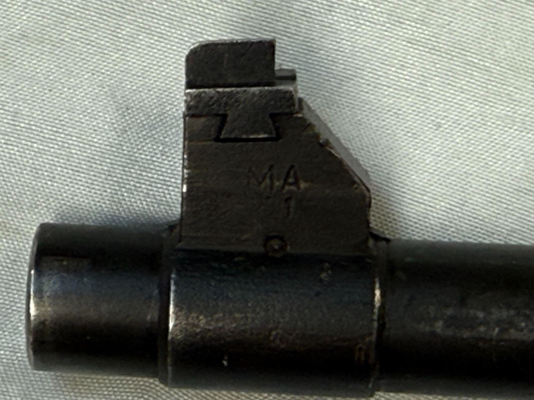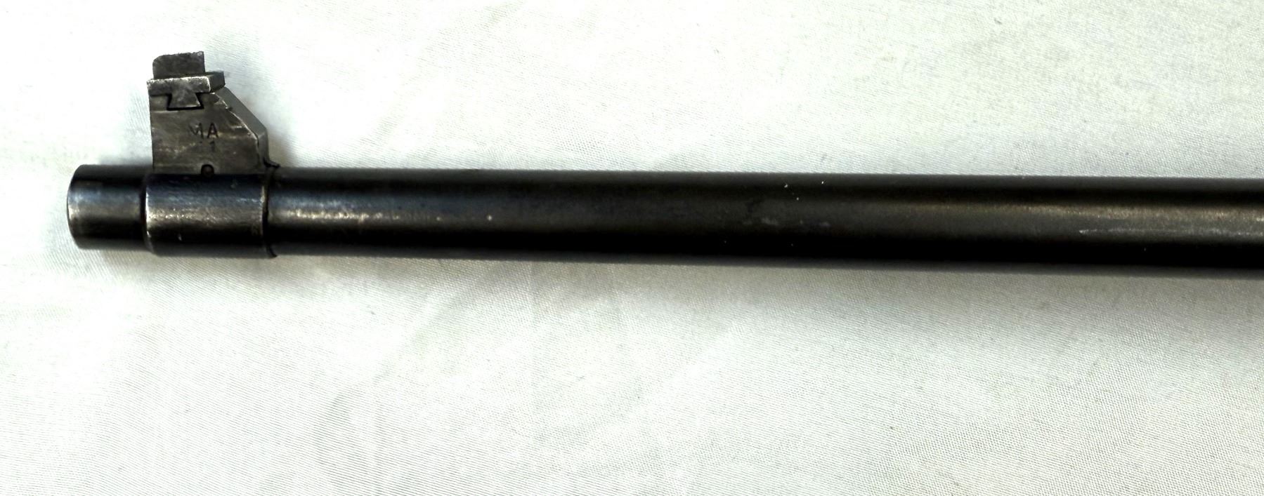 Barrel is 25 inch long with excellant bore. Original rear and front iron sights are still
