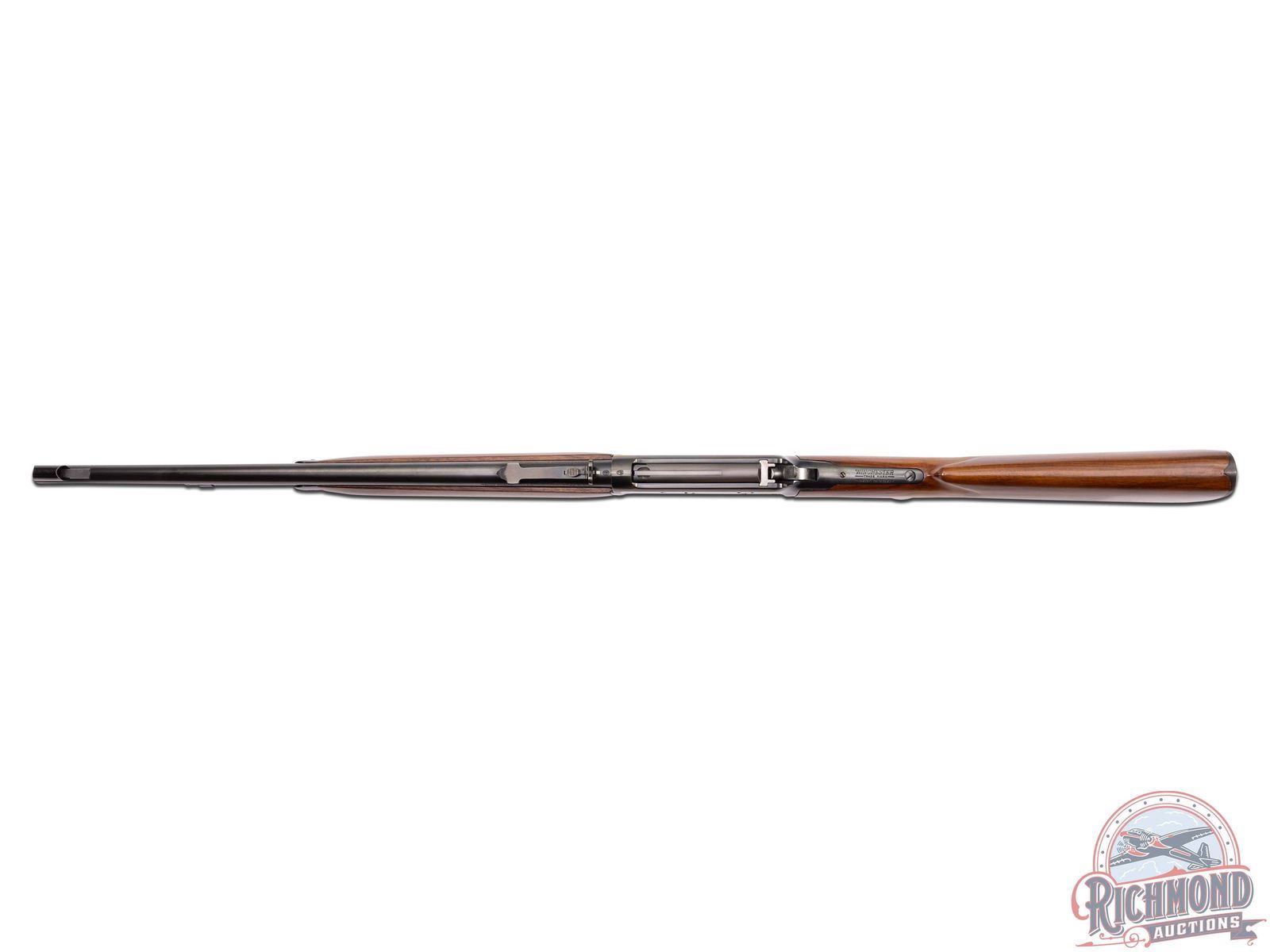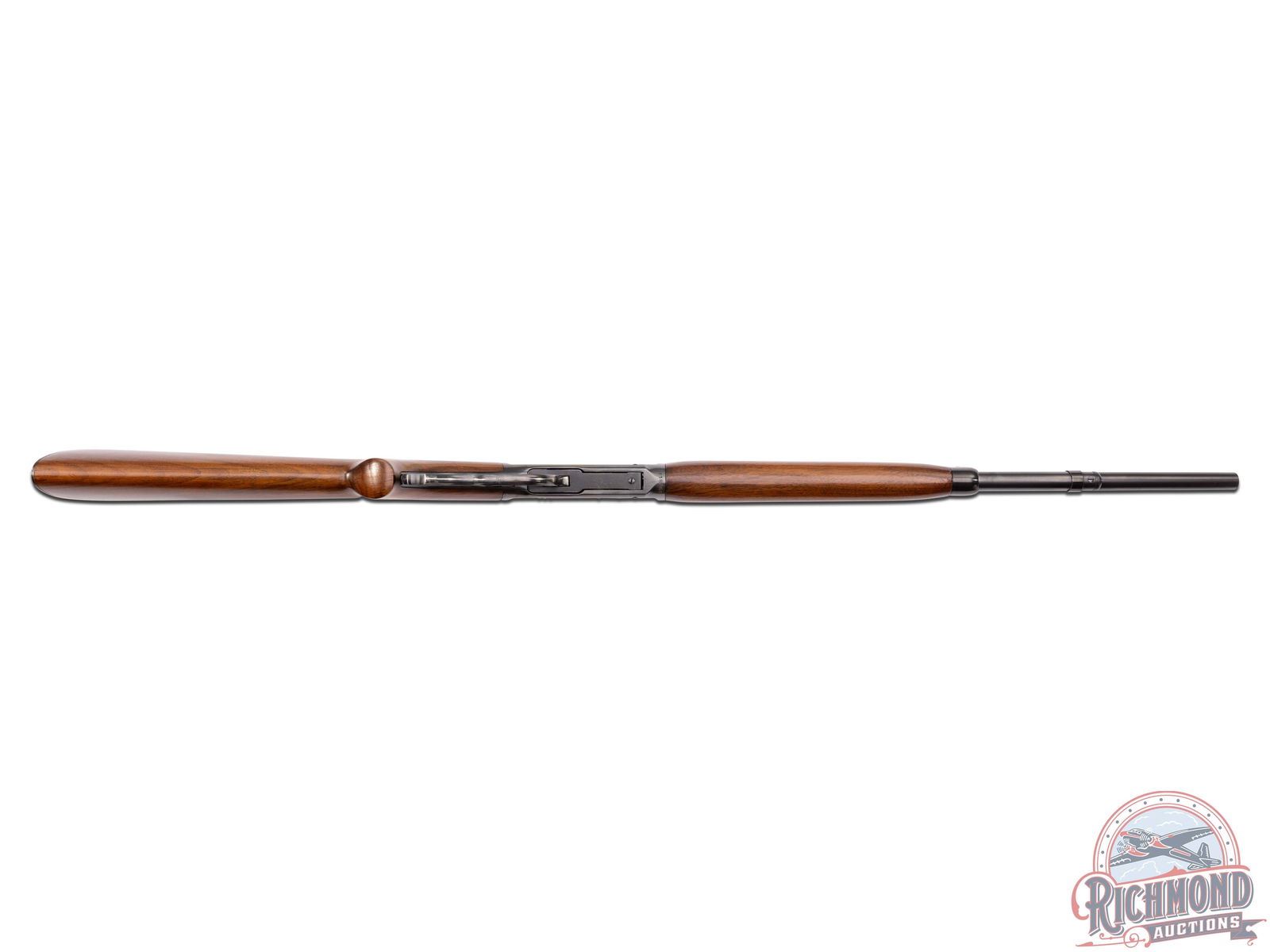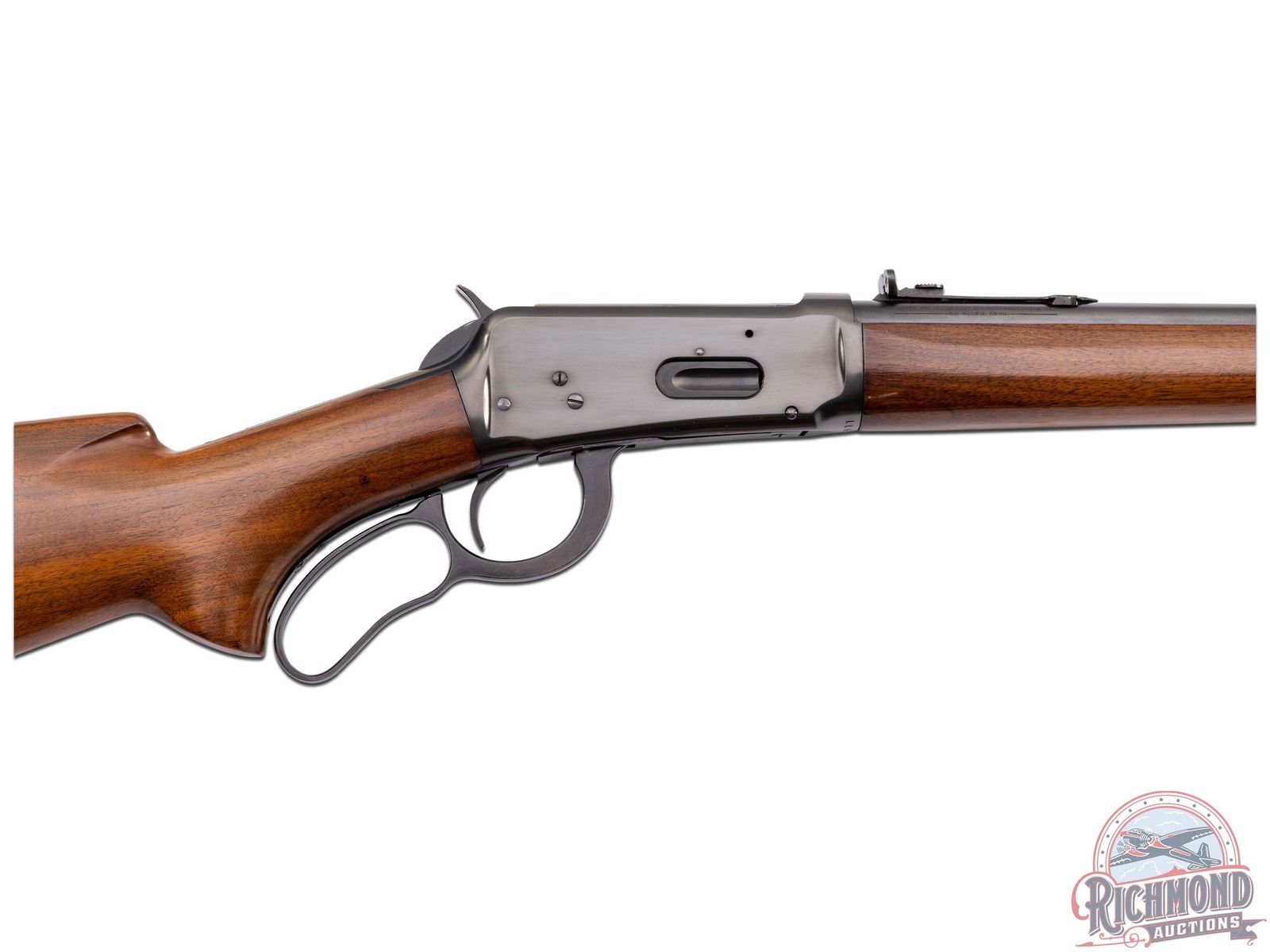 Manufactured in 1937. Features a 20" blued carbine barrel with all the standard Winchester roll marks and proof marks. Correct factory carbine hooded front ramp sight and rear adjustable buckhorn sight. Blued receiver with side loading gate and tubular magazine. Smooth walnut wood stock with pistol grip and matching forearm. Fitted with a factory checkered metal butt plate. Rare find carbine in this condition! LOP: 13". CALIBER: 30 WCF. S/N: 1148864. FFL STATUS: Curio & Relic.
