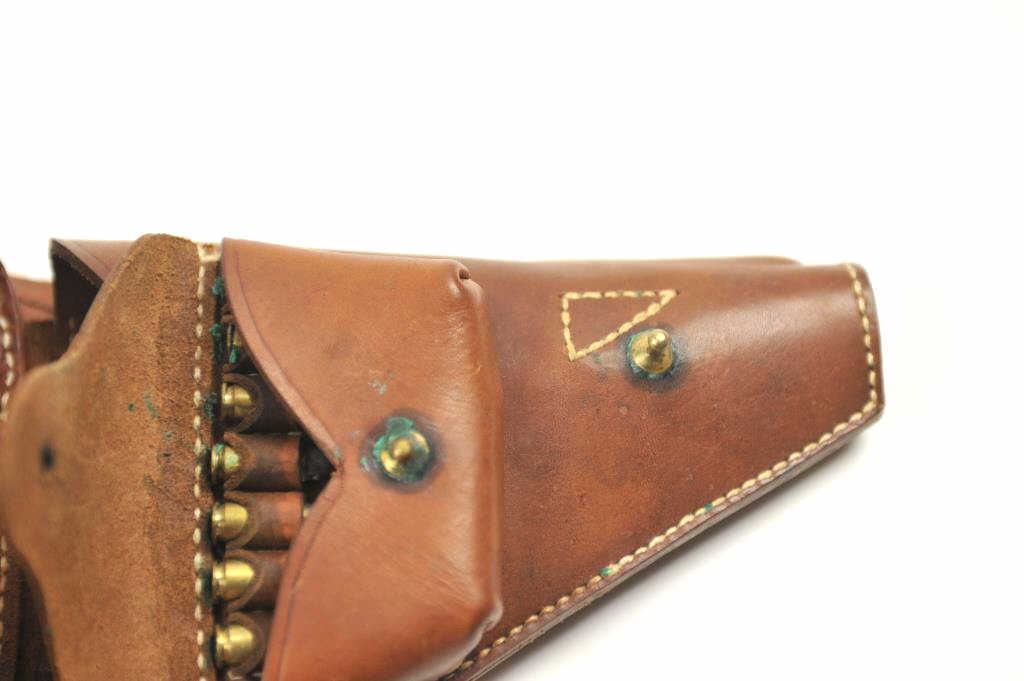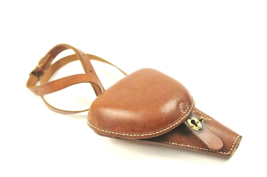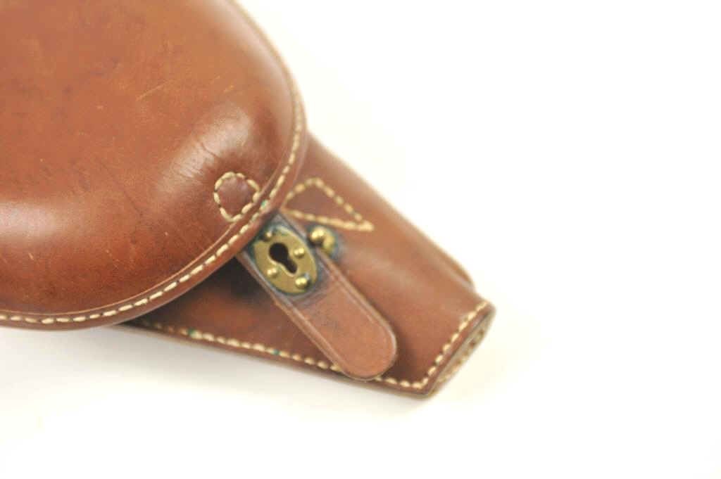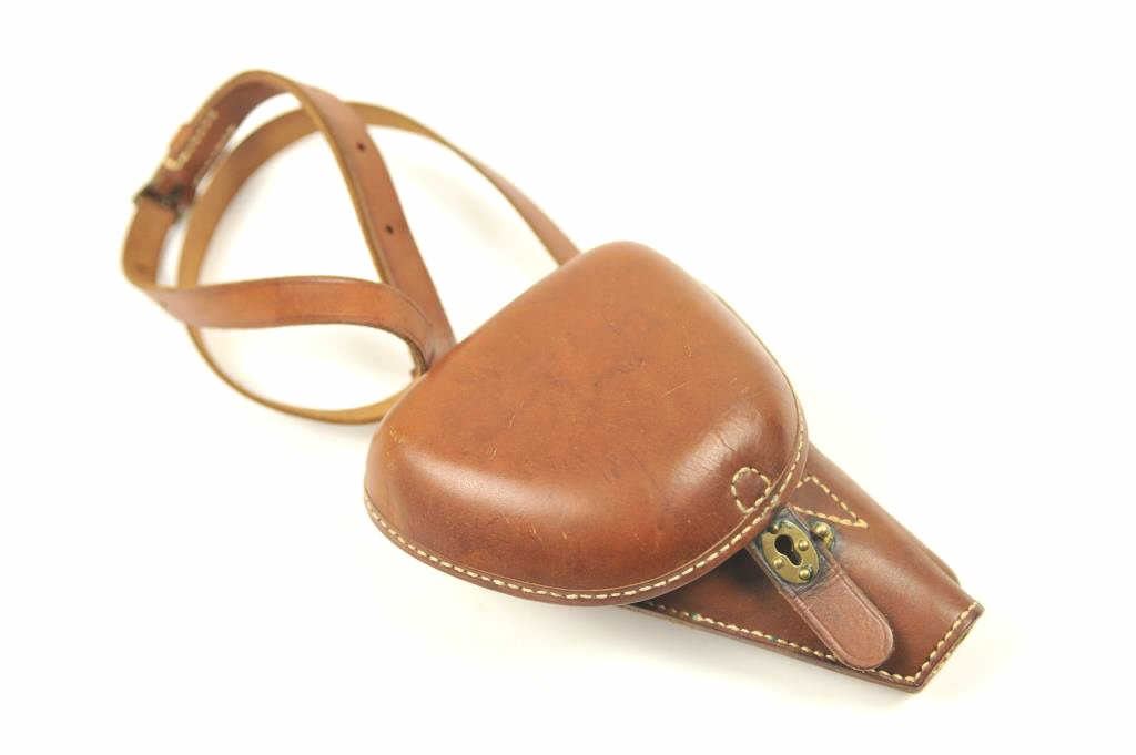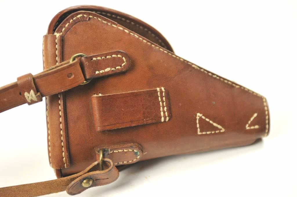 Excellent reproduction clamshell style leather holster for a Baby Nambu pistol. The holster was made 30-40 years ago, an almost undetectable and accurate reproduction. Est.: $175-$350.