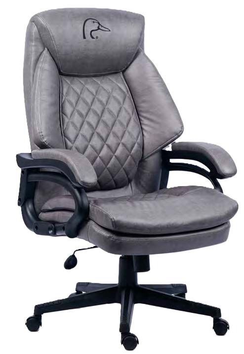 The Ducks Unlimited Executive Chair blends comfort and sophistication with a modern edge. Upholstered in stylish heathered gray PU leather, it adds a contemporary touch to any office or home workspace. The iconic duckhead logo is tastefully embroidered on the back headrest, showcasing your support for conservation in a subtle yet distinguished way. Designed for all-day comfort, this chair includes a hydraulic adjustable tilt and height mechanism to suit your preferred seating position. The 5-star base and smooth-rolling casters offer reliable stability and mobility, making it as functional as it is refined.