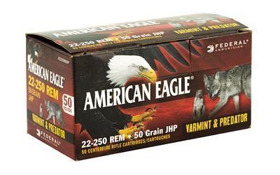 Federal, American Eagle Varmint & Predator, 22-250, 50 Grain, Jacketed Hollow Point, 50 Round Box