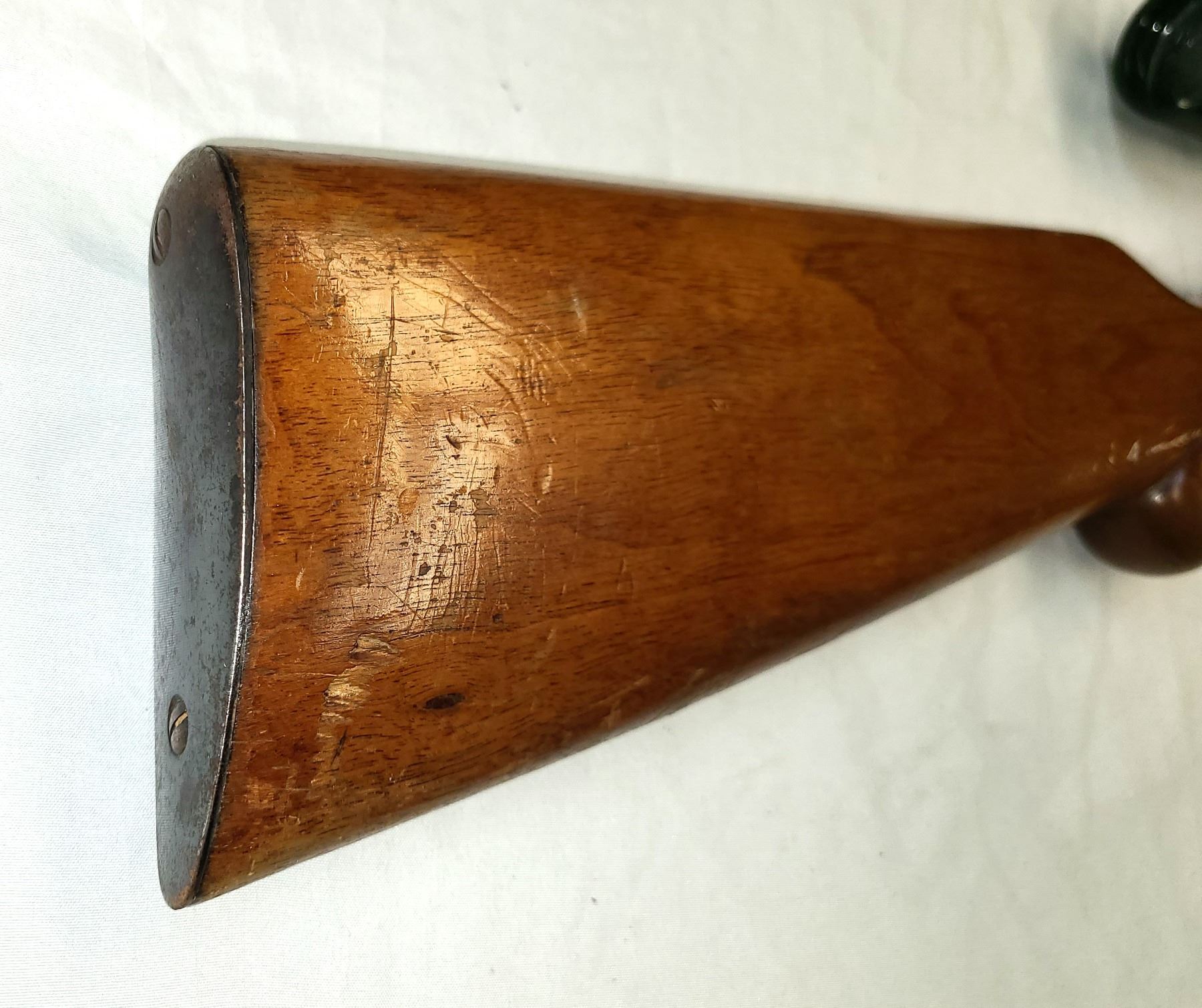 semi-pistol grip, straight comb, and a sheet steel buttplate. Some minor dark marks
