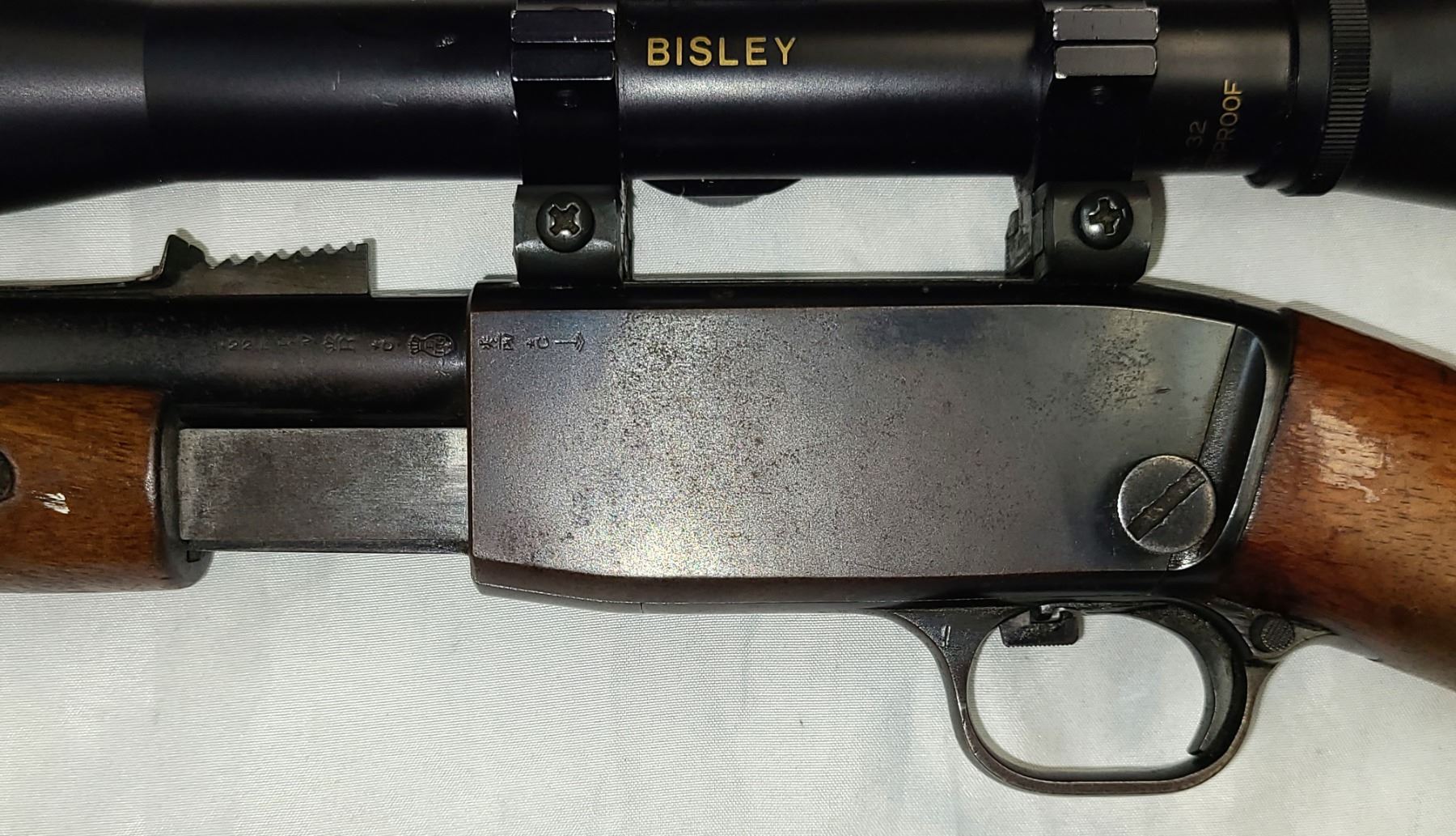 Also has a Bisley branded 4 power scope mounted - Scope is clear and has heavy