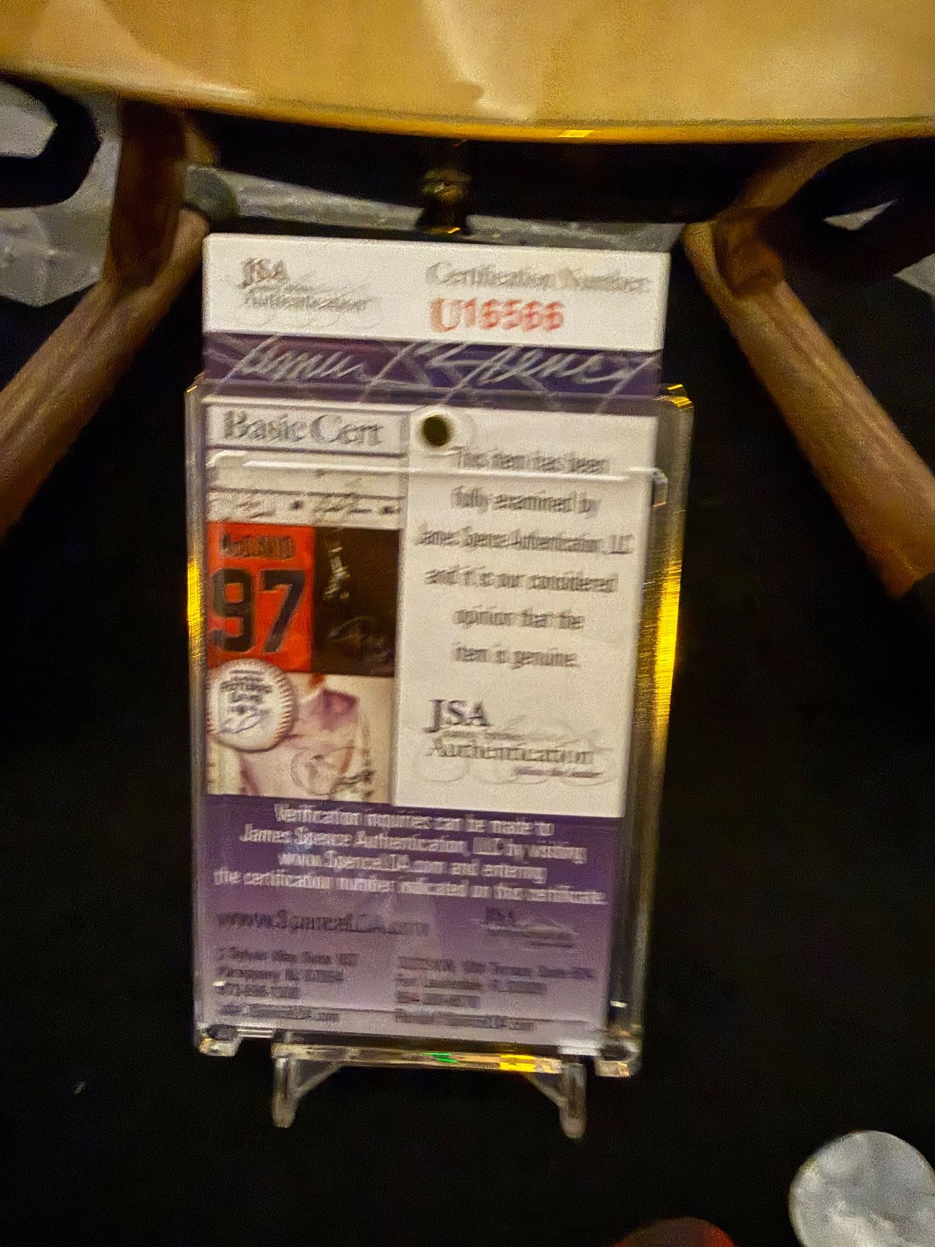 The autograph is authenticated by James Spence Authentication (JSA), one of the most respected names in the memorabilia industry, and is accompanied by an official Certificate of Authenticity held by JSA. This verification ensures confidence in the signature’s legitimacy and long-term collectible value.