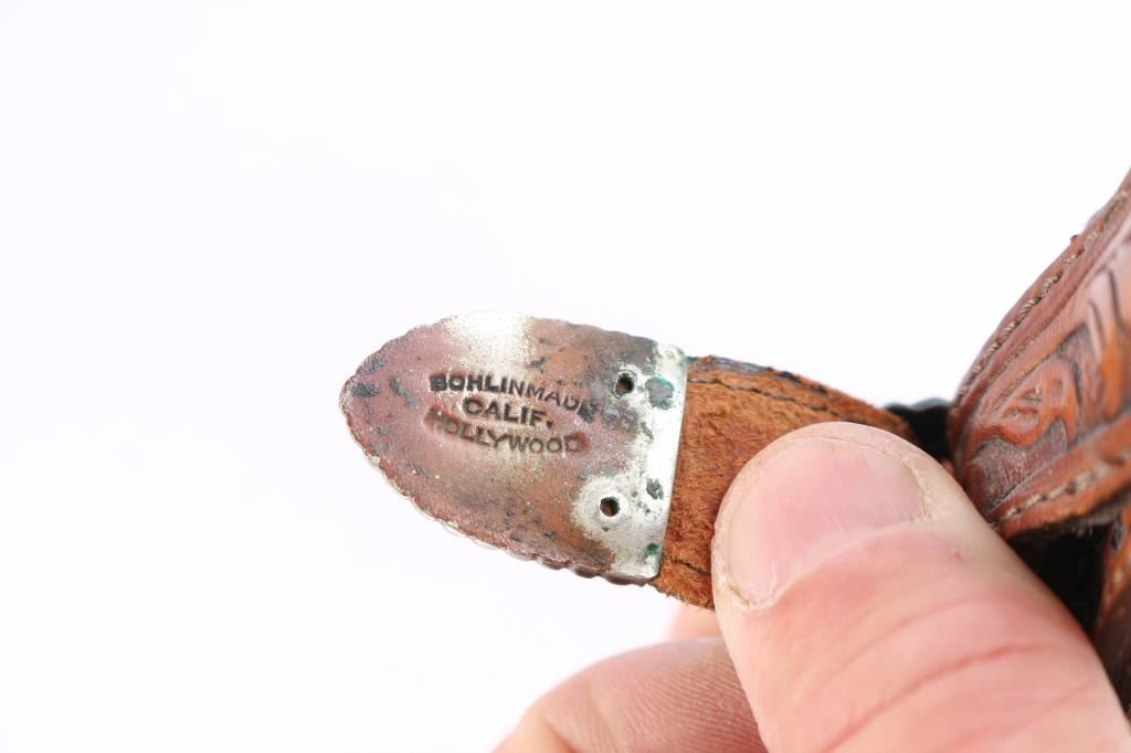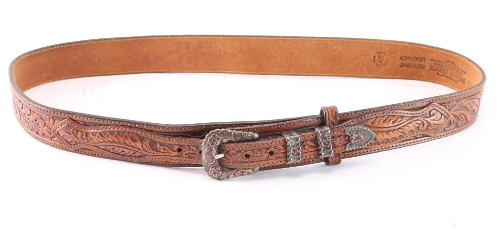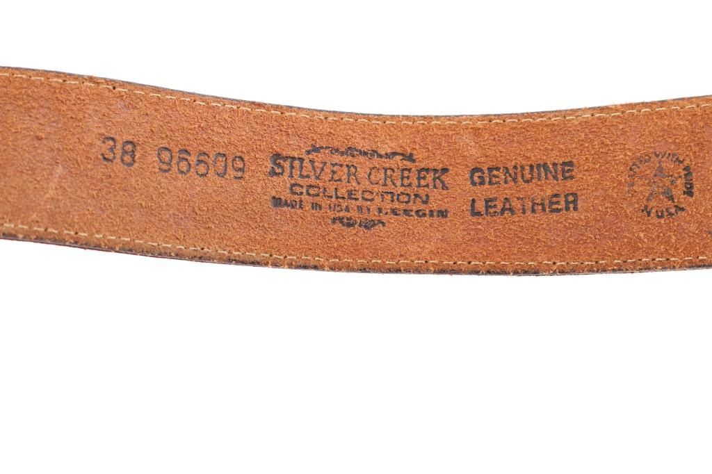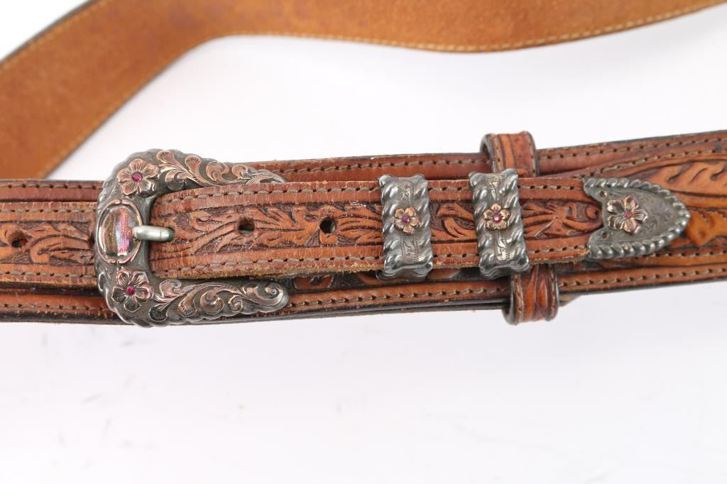 Sterling and yellow gold weatern buckle and keeper Bohlin made and marked accented with rubies.