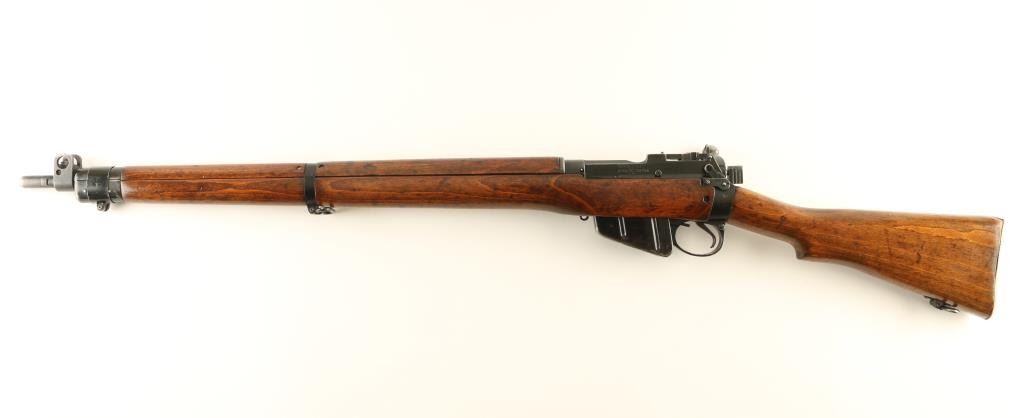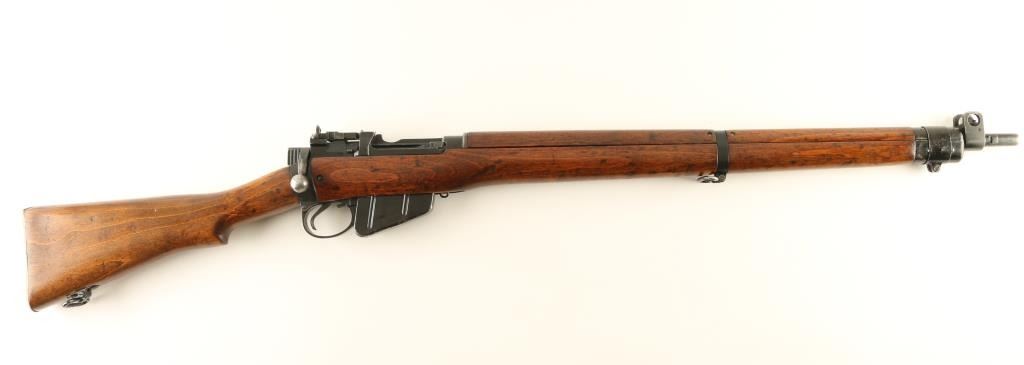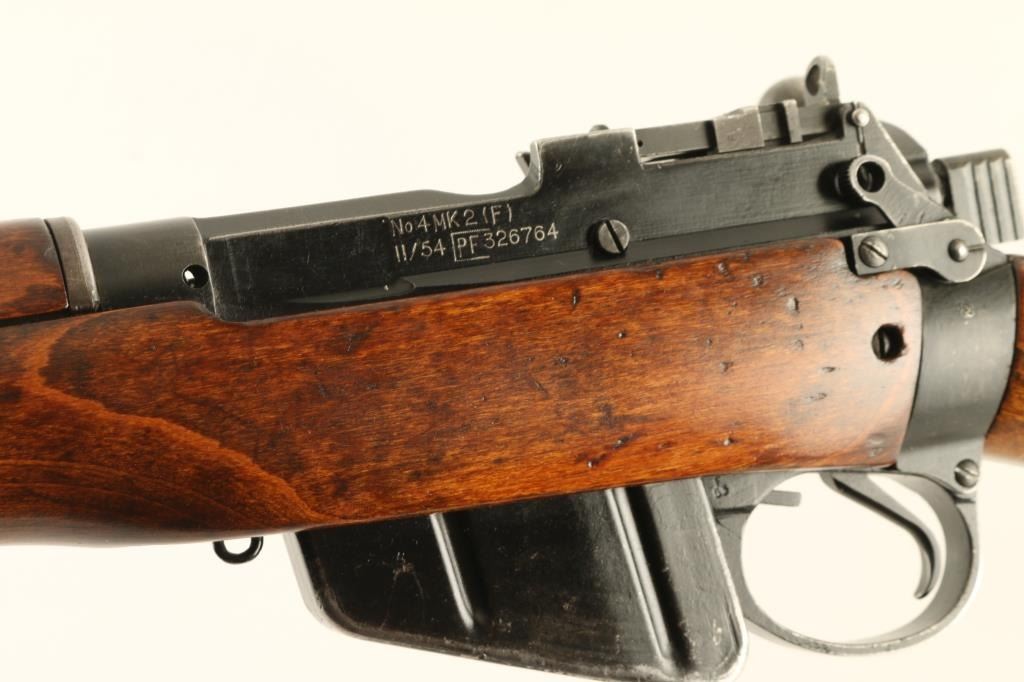 Rifle. Bolt-Action. British Military Issue. Introduced in 1949. This one is dated 11/1954. Possibly an Irish Contract Rifle. 25.2" barrel, with flip-up ladder rear sight, and fixed blade front sight. Fed from a 10-rd box magazine. (Matched to receiver.) Thumb safety. Brass butt plate. Bore appears excellent. Wood is very good with the usual dings. Action is smooth/tight. Black painted finish has edge wear, sctraches NRA Condition-Very Good. C&R Firearm..