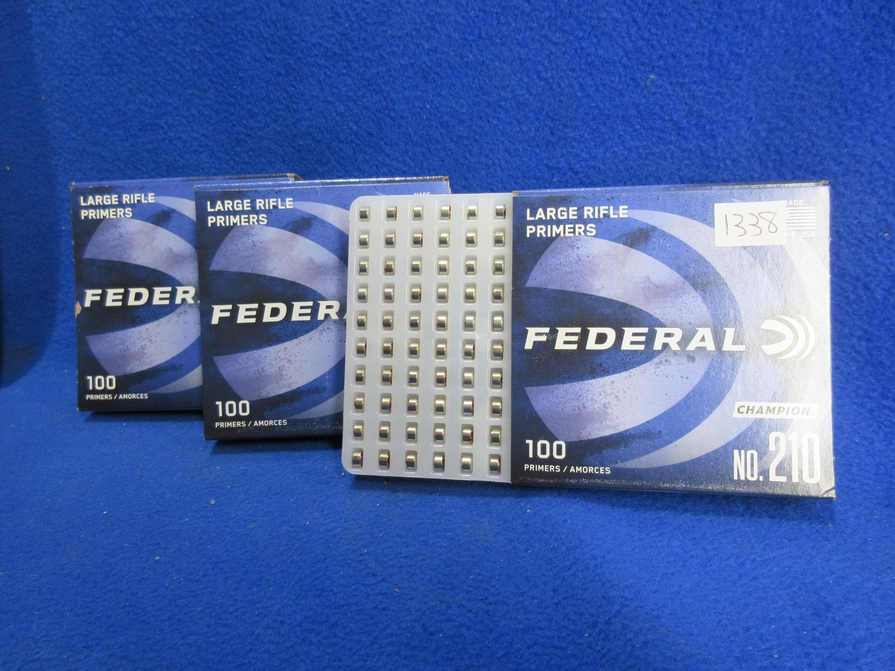 Federal No. 210 Large Rifle Primers - 3 Boxes of 100 - Must Ship Purolator