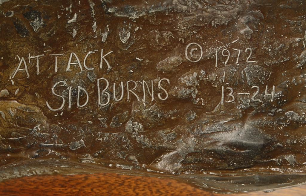 Entitled "Attack". Signed on base, number 13/24 dated 1972. Measures 17" tall by 15 1/2" at base.
