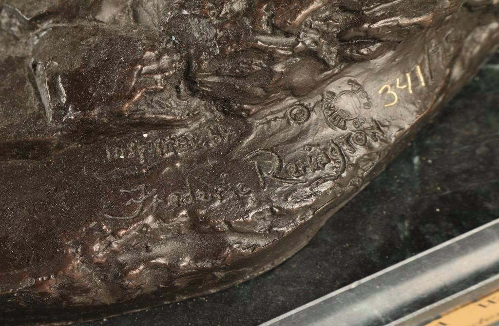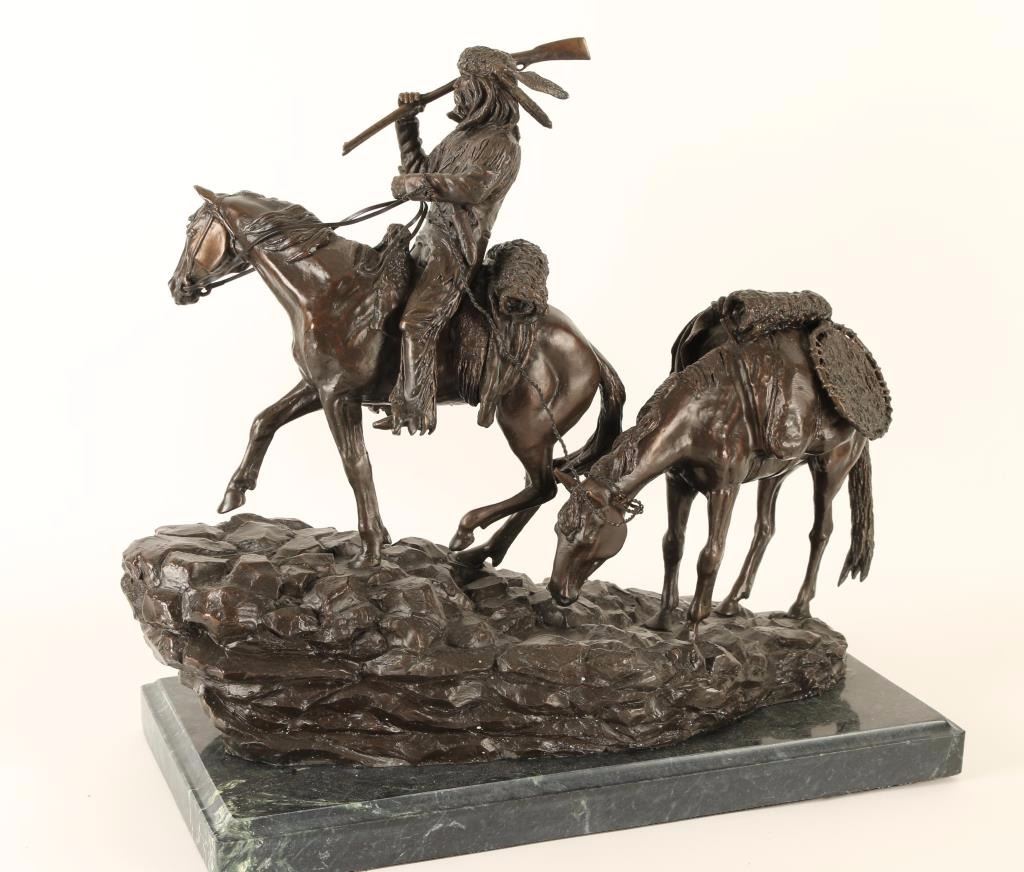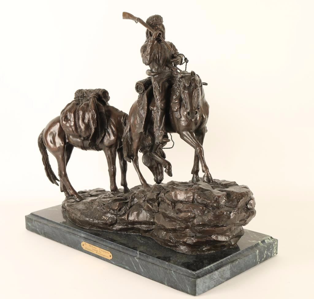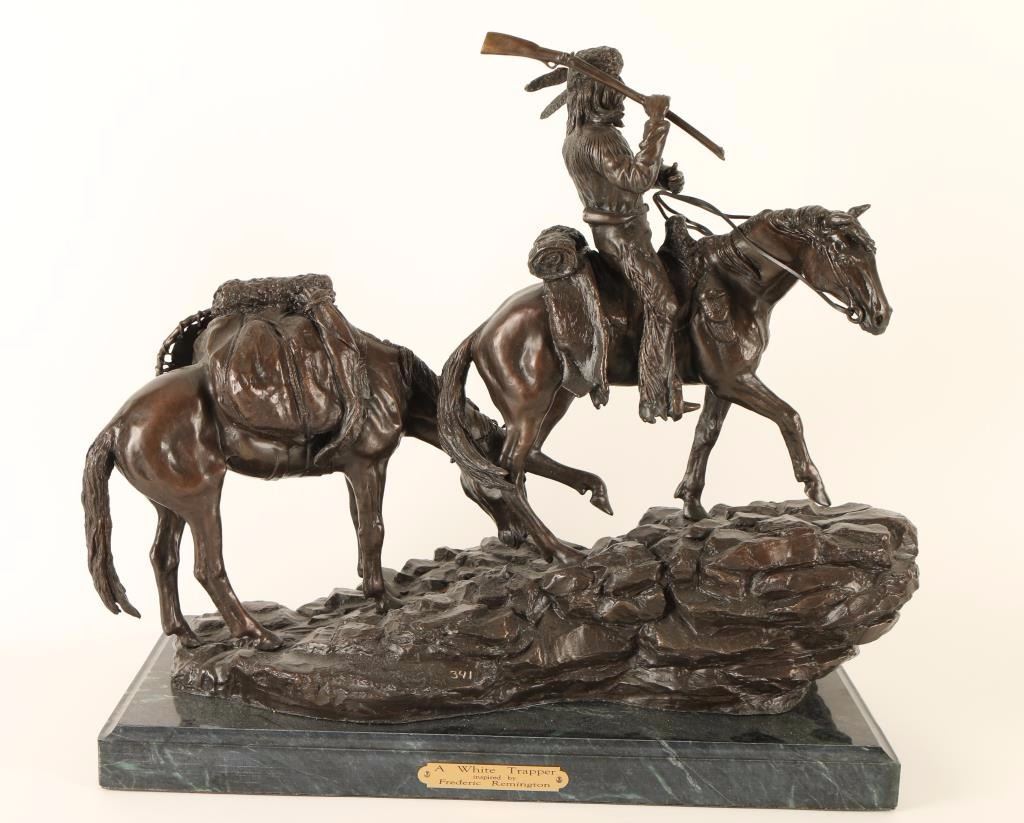 by Frederic Remington entitled A White Trapper, restrike, 17"X15". on marble base