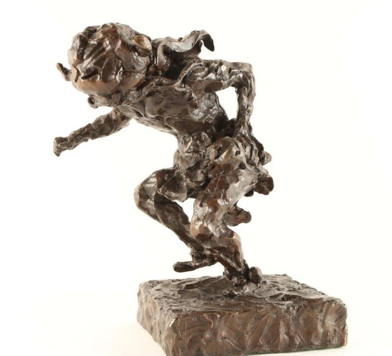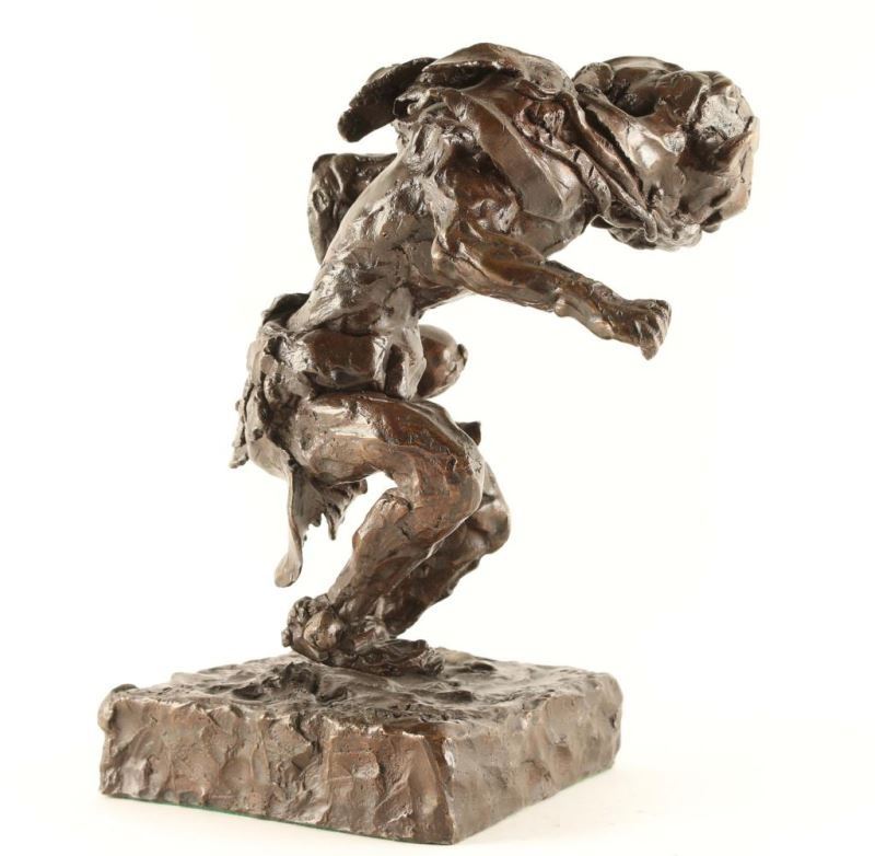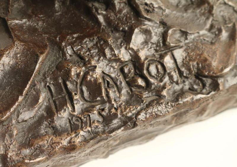 "Buffalo Indian Dancer I" Bronze Sculpture by Hugh Cabot (1930-2005) is titled "Noggle Bronze I". This limited edition is #4 of 25, issued in 1975. This traditional Plains dancer has a dynamic presence thanks to Hugh's rough working of the original material. He holds a rattle in his hand & his head is covered with the fur & horns of a bison. As you look around the figure, his emotional intensity can be felt! With the base included, it's 10-1/2" tall & about 7" wide. In excellent condition, the base is dated & signed. This Buffalo Indian Dancer I Bronze Sculpture is magnificent....need we say more? Hugh Cabot III was a war time artist for the Navy. He was a prolific artist & worked in many different mediums. For 37 years, he lived and worked in Tubac, AZ where he had a gallery of his work. This gallery is still open to the public today!