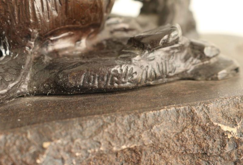 by Lowell Davis depicting a beaver, signed in bronze, measures 9 1/2"X4.