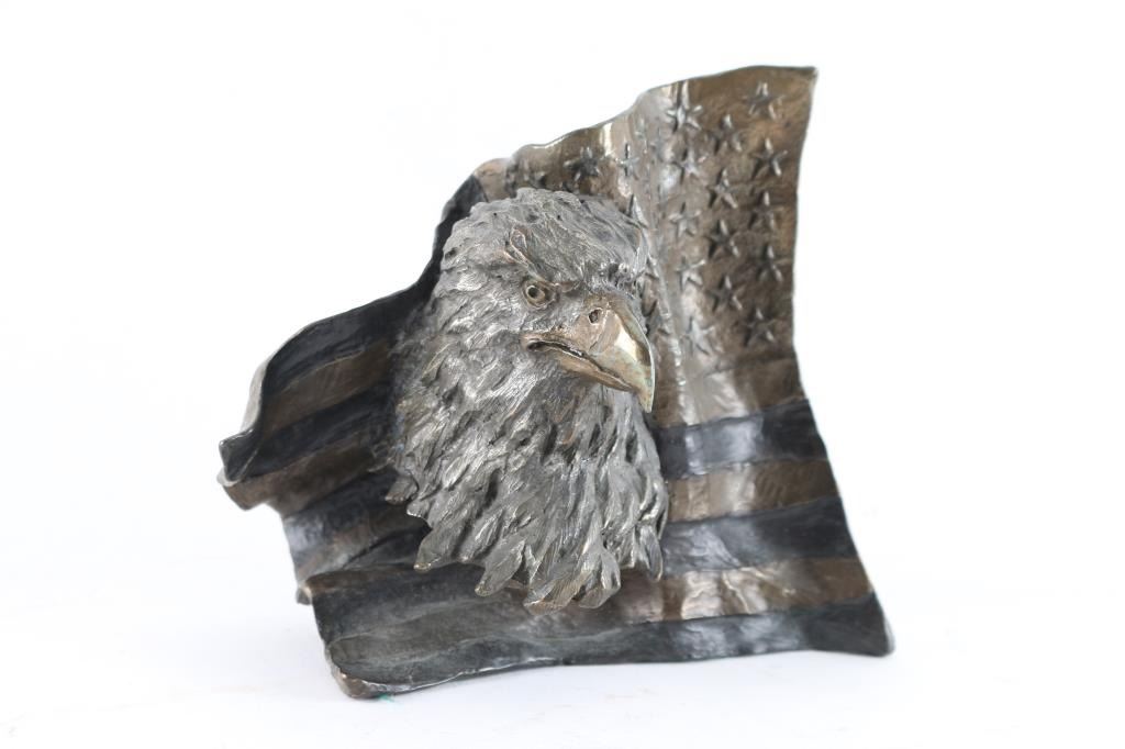 Mark Hopkins signed eagle and flag. Cast bronze sculpture. Limited Edition 1122/2500. Approx 6"x5"x4". A rare find.