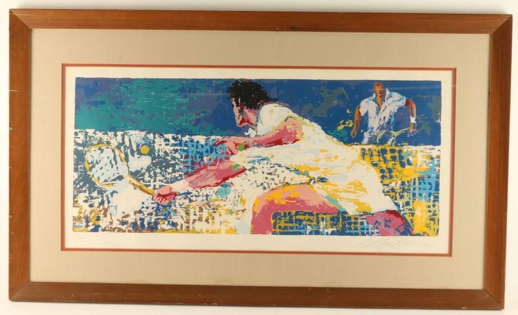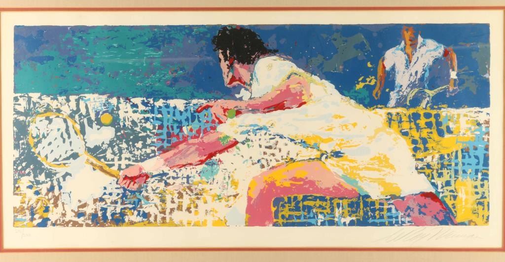 by noted artist Leroy Neiman, signed in the lower righ hand corner, #291/300 depicting a tennis player, nicely framed and double matted, image measures 14" x 29".