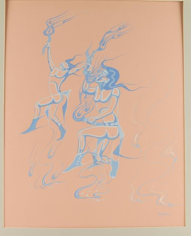 by noted Native American artist Beatin Yazz, entitled Night Chant. Hand signed lower right hand corner. Image size 19X15.
