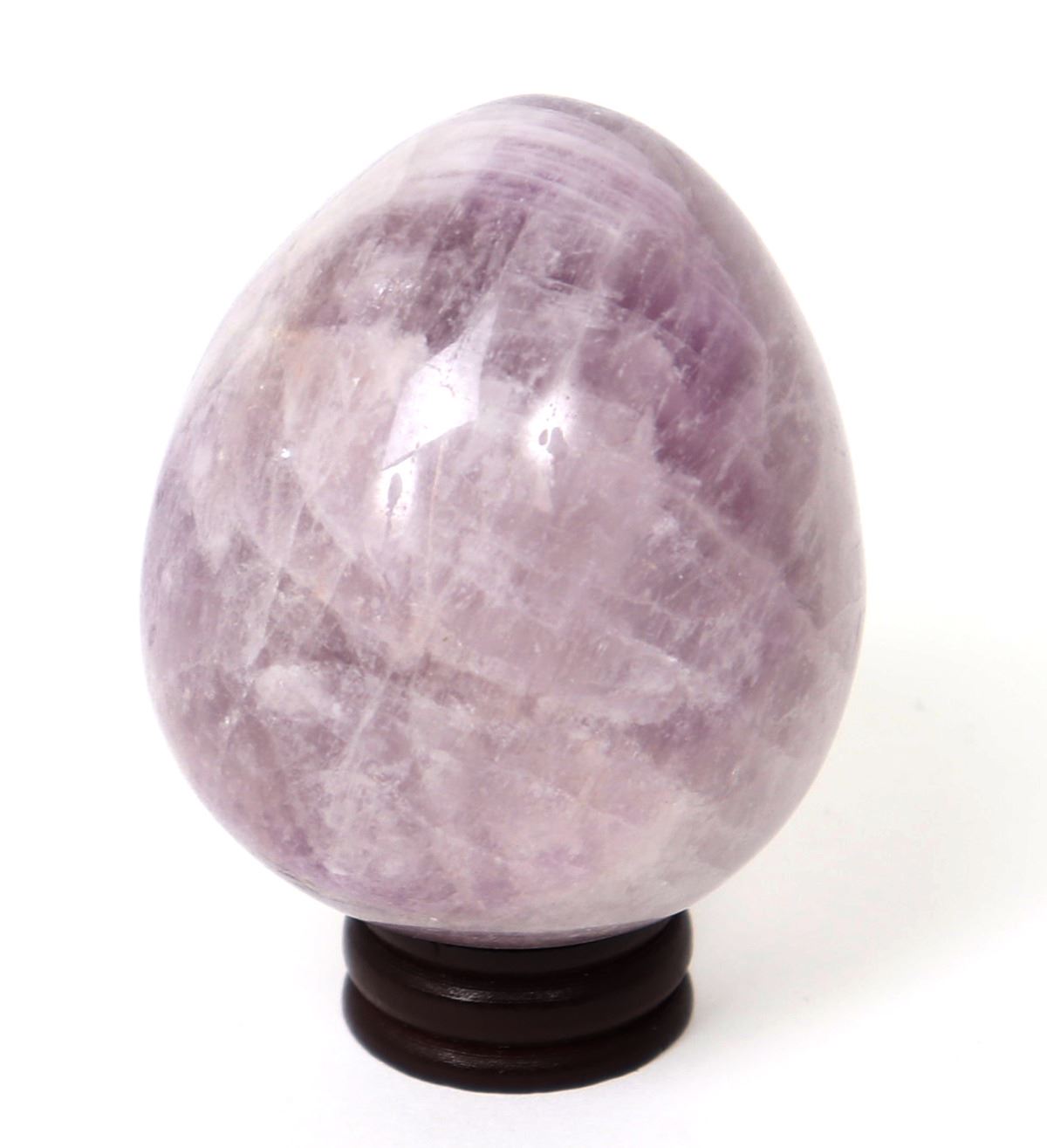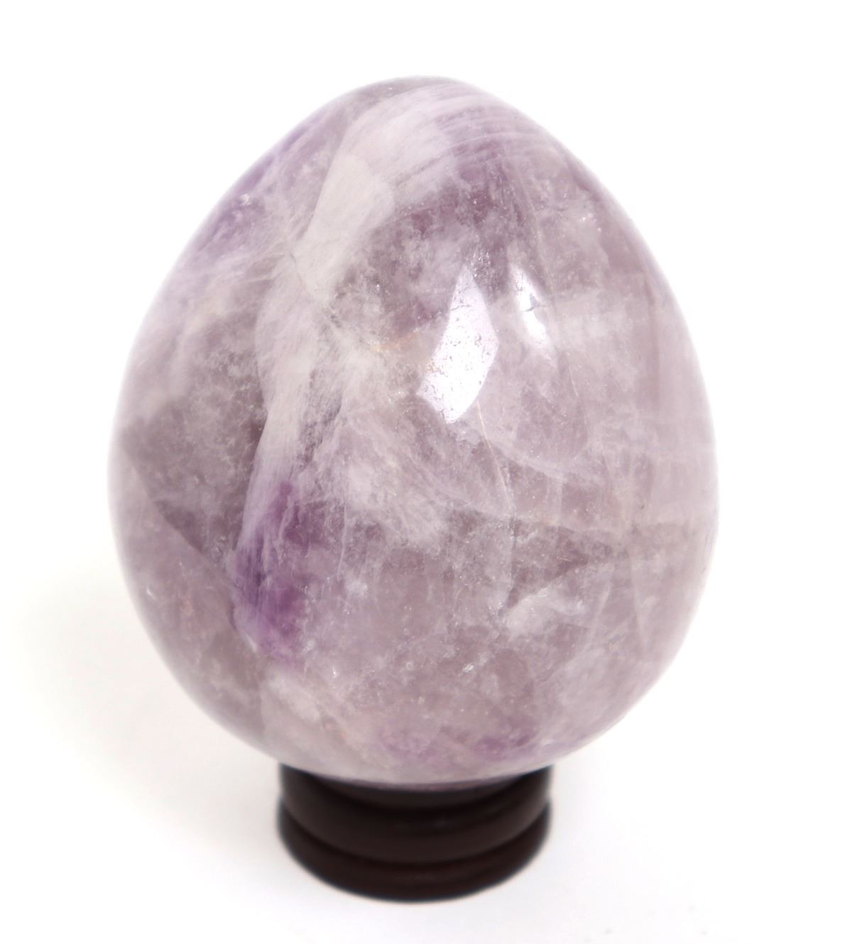Perfectly egg shaped and polished section of an amethyst, with beautiful lavender and deep purples throughout. Size 3 1/8" H with stand. Condition: Great condition throughout.