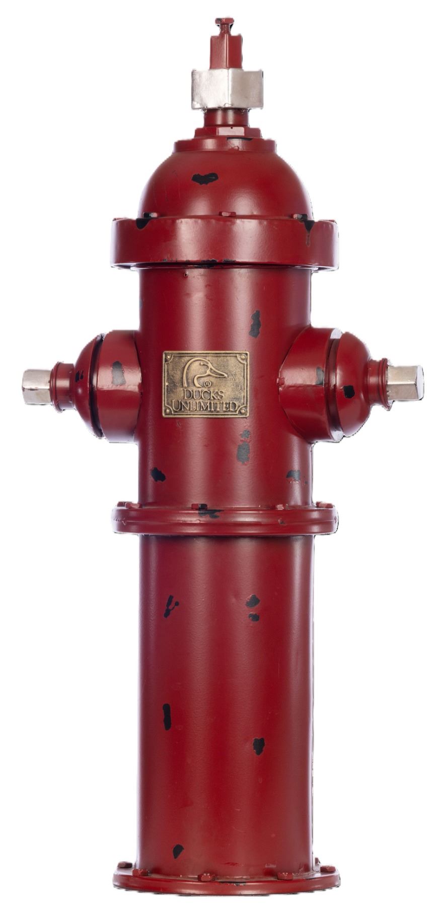 Elevate the charm of your outdoor area with this distinctive antique metal fire hydrant. Beyond its decorative appeal, this piece offers practicality as well; its top compartment serves as a convenient storage solution for pet treats, leashes, and other essentials, adding functionality to its aesthetic allure. Adorning the front is a metal plate showcasing the stacked DU logo, showcasing your support for Ducks Unlimited in a stylish manner. Complete with metal stakes, installation in the ground is hassle-free and secure, ensuring stability and longevity in your outdoor space. Whether serving as a decorative accent or a functional organizer, this antique metal fire hydrant brings character and utility to any garden or patio setting.