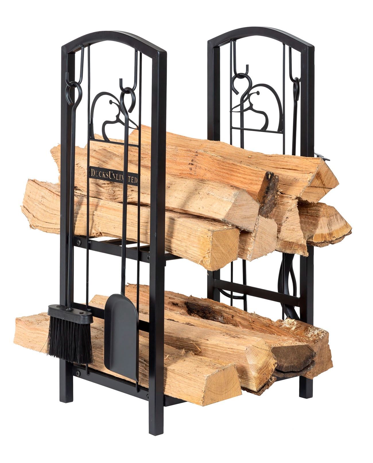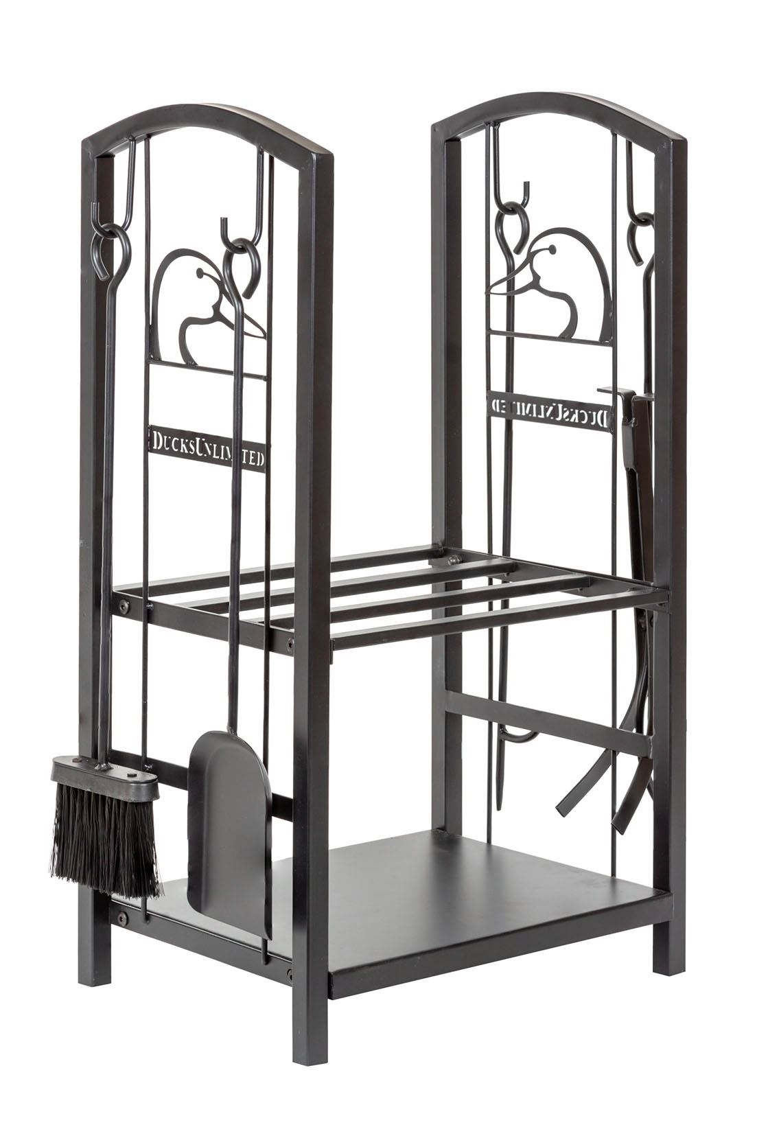 This fireplace set is a great addition to any cabin. Set includes wood tongs, shovel, poker, brush, and a stand to store firewood. The Ducks Unlimited logo is featured on each side of the stand. 29 ½” x 15 ¾” x 12”