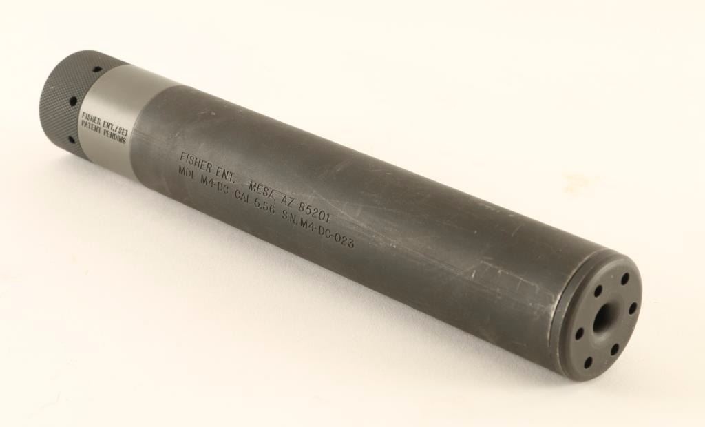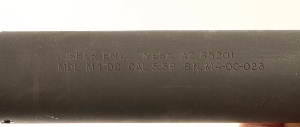 SN: M4-DC-023 Quality .223 caliber suppressor designed for use with AR platform rifles. Features a matte black finish, 9.2" overall length and integral quick detach system compatible with the SEI Vortex flash hider. Condition is good. ***Class III***