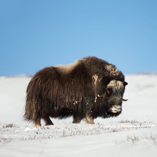 Canadian High Arctic Adventures-Musk Ox Hunt: This Musk Ox hunt for one hunter will be conducted on the mainland and two remote islands in the Northwest Territories. The trip is 5-days with near 100% success on mature bulls. Inuit guides will take the hunter by snowmobile and Qamutik sleds for an epic hunting experience! The camps are basic heated cabins while spike camps are insulated, heated wall tents. The hunts are 1x2 with an Inuit guide and an assistant guide. Hunts will be spot and stalk traveling by snowmobile looking for small groups of Musk Ox. Once the herd is located, the final stalk is done on foot. This outfitter’s clients have taken several record-book bulls each year with both rifle and archery equipment.