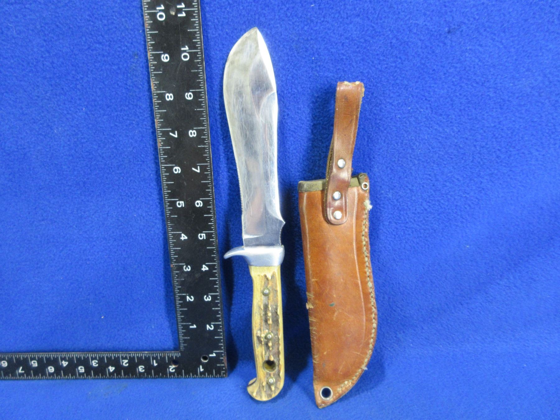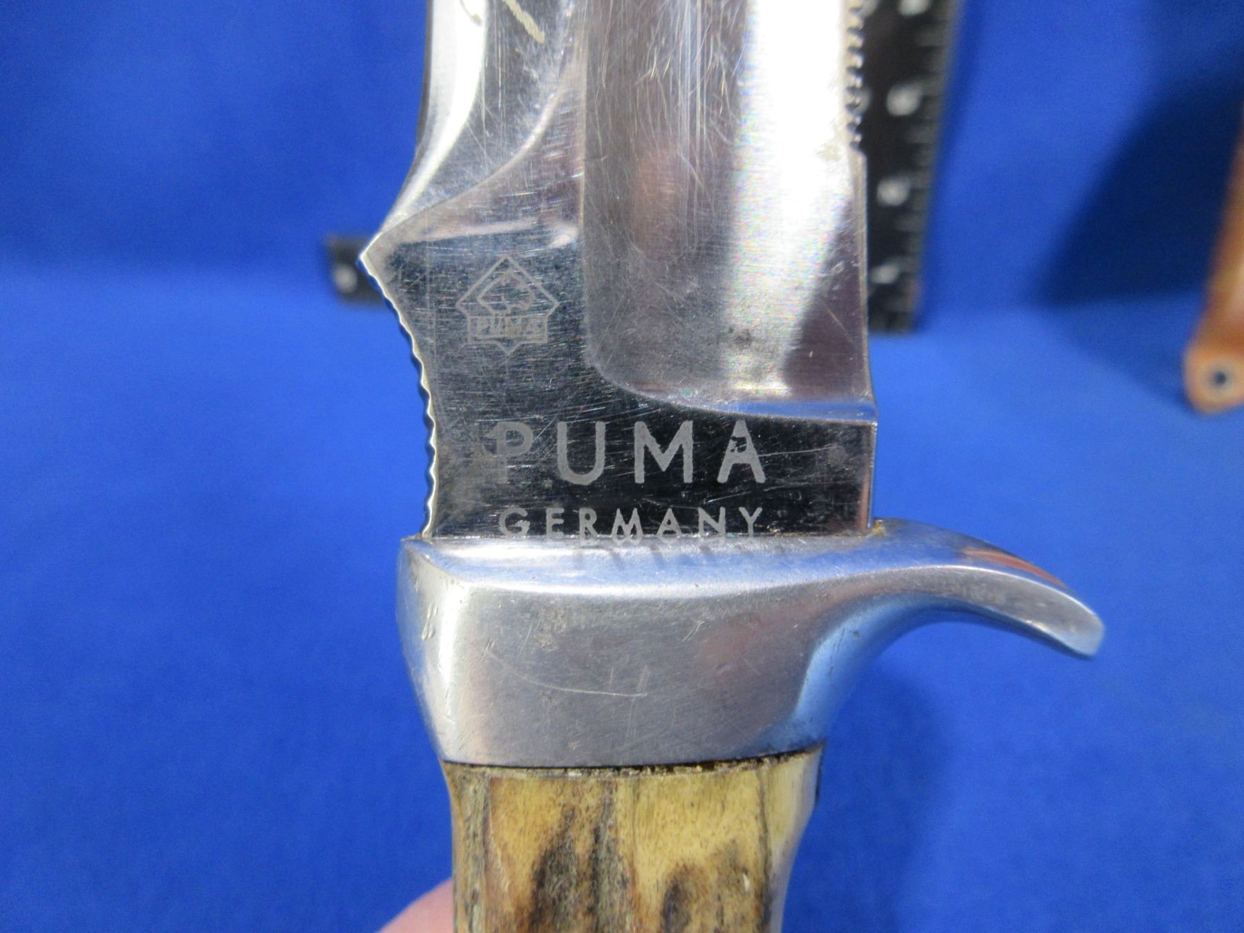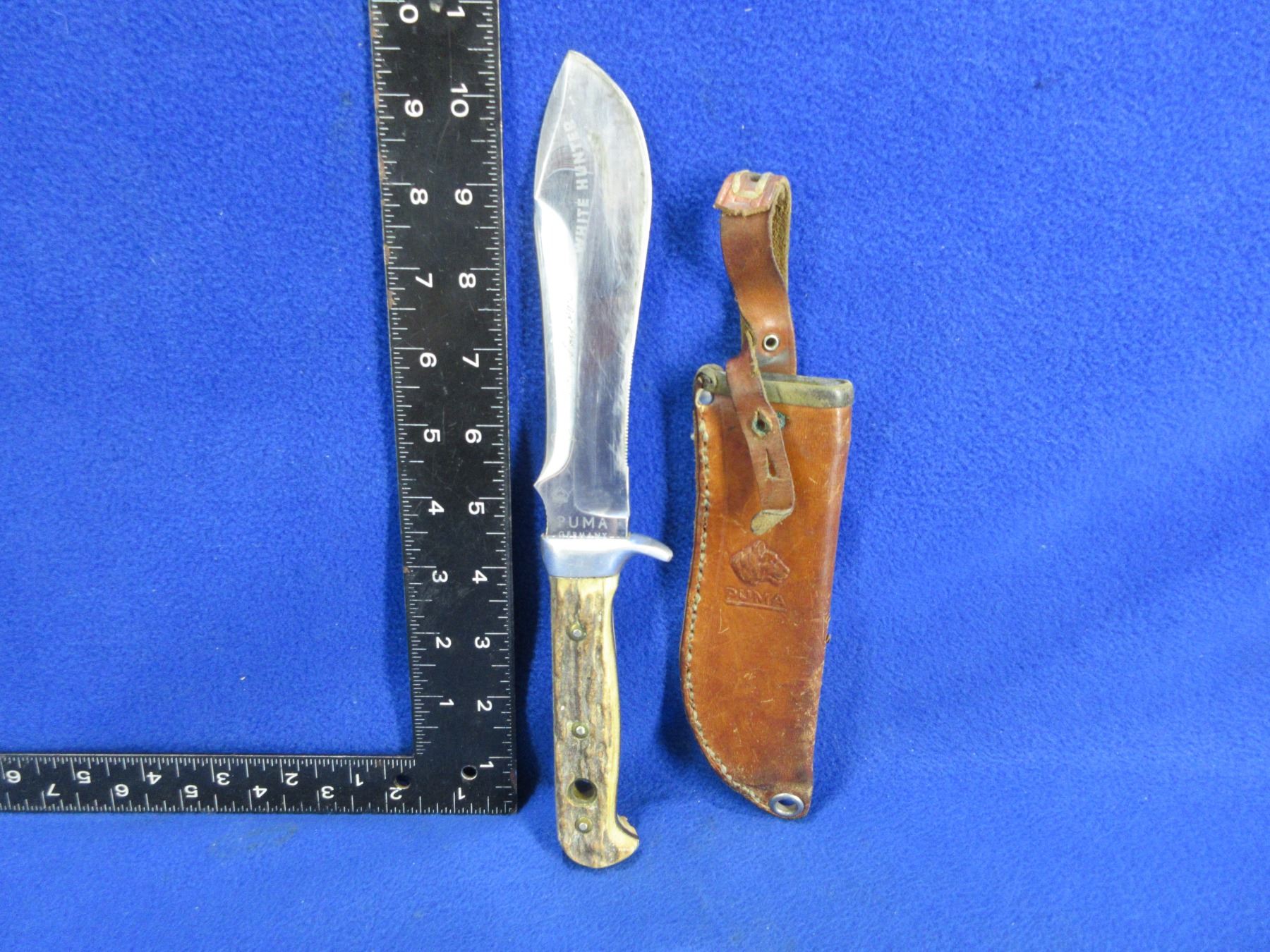 Fixed Blade Knife with Original Leather Sheath - Puma Germany White Hunter - Stag Handle - 6" Blade