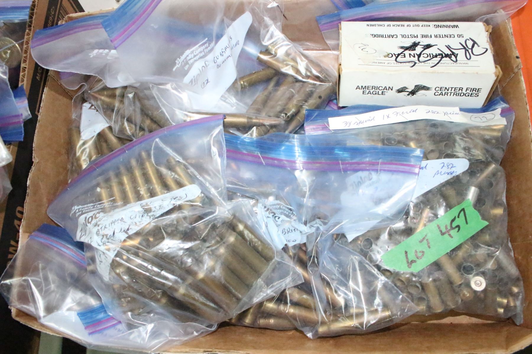 Flat of Brass & Gunsmith Dummy Ammo: 7.62 x 52 w/Stripper Clips; 303 British; 38 Spl & 7mm