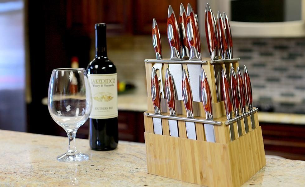 The 20-piece Classic Series knife block set is the ultimate collection, comprising all the knives you need to prepare both simple and sophisticated menus. The set includes our beautiful two-piece rubber wood block. The front section can detach to display the Steak/Dining knives as a centerpiece for that special gathering or kept together as a beautiful kitchen statement to always have the right knife at reach! Knives in collection: