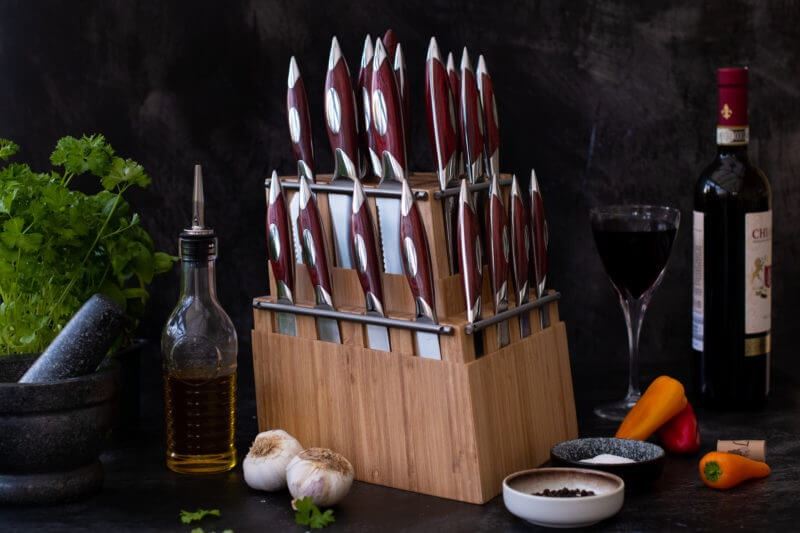 The 20-piece Classic Series knife block set is the ultimate collection, comprising all the knives you need to prepare both simple and sophisticated menus. The set includes our beautiful two-piece rubber wood block. The front section can be detached to display the Steak/Dining knives as a centerpiece for that special gathering or kept together as a beautiful kitchen statement to always have the right knife at reach!