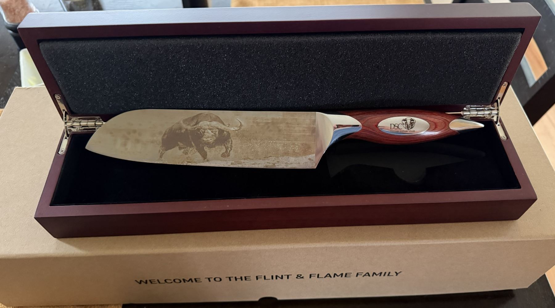 Flint and Flame exclusive Chef's knife featuring a cape Buffalo