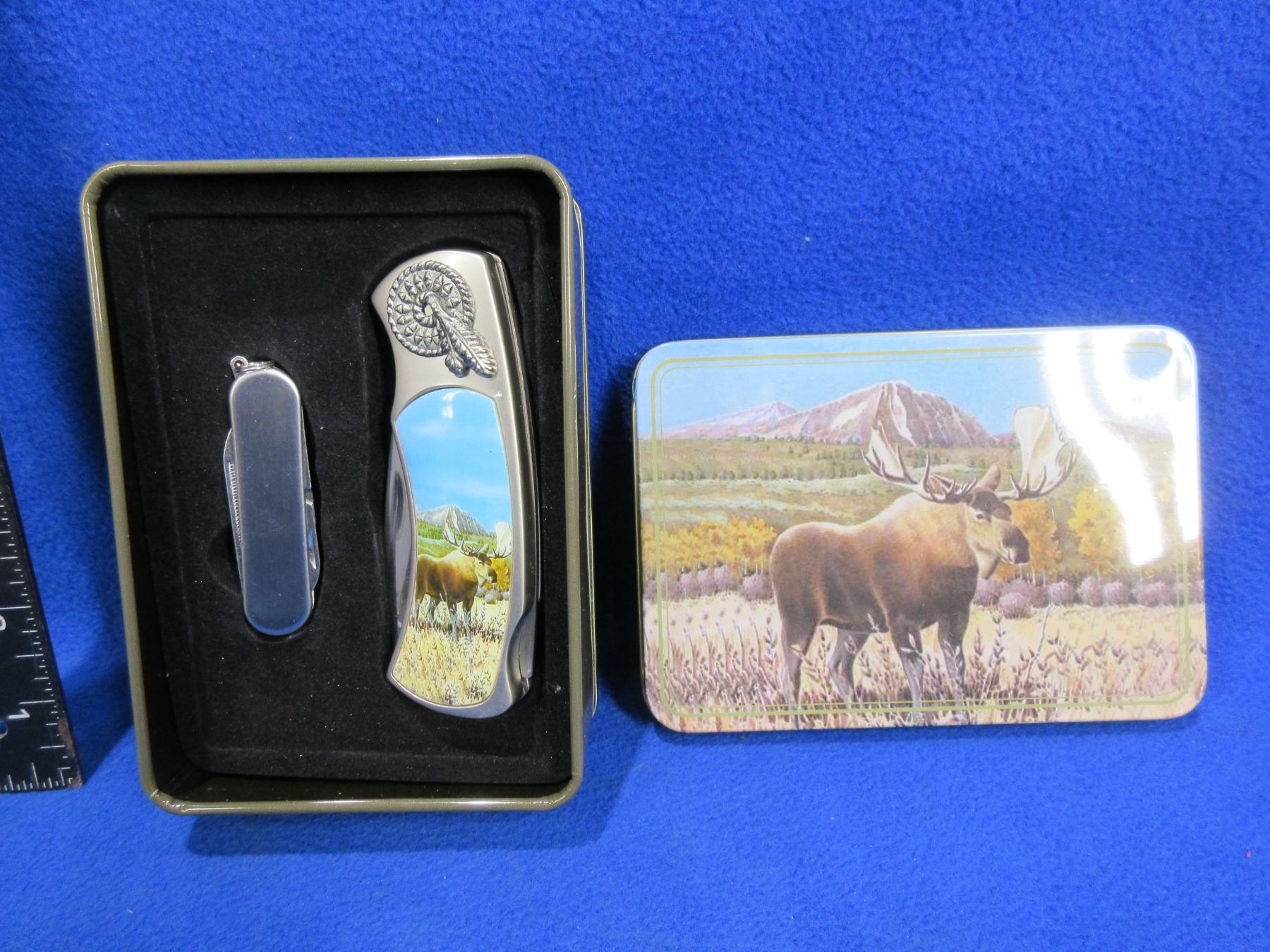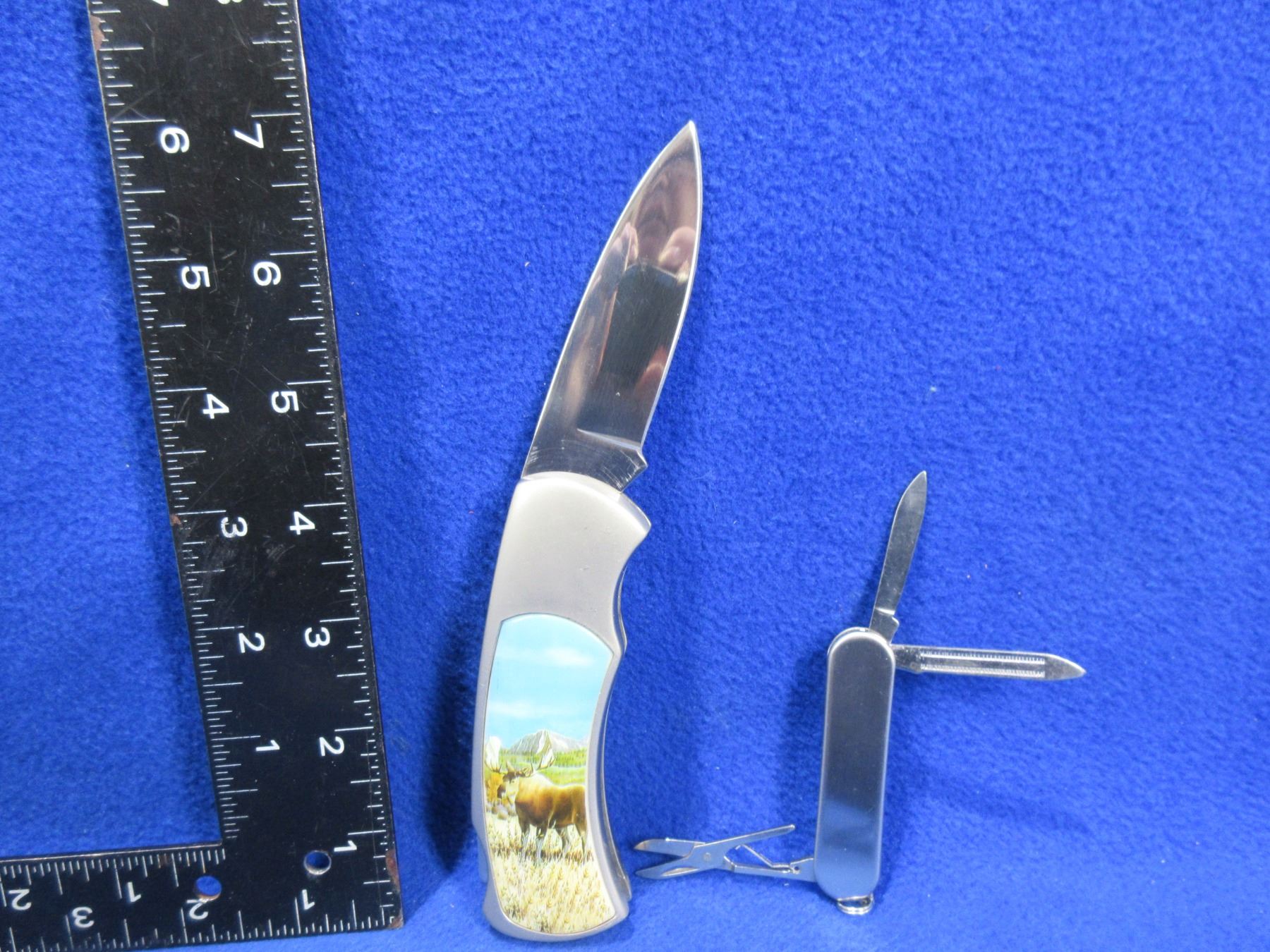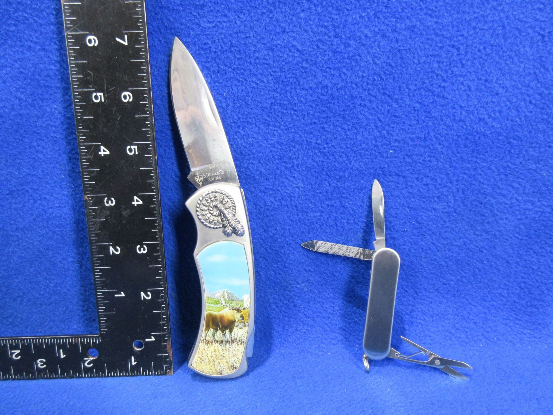 Folding Blade Knife and Key Chain Knife In Display Case - 3" Blade on Folding Knife - Appears Unused