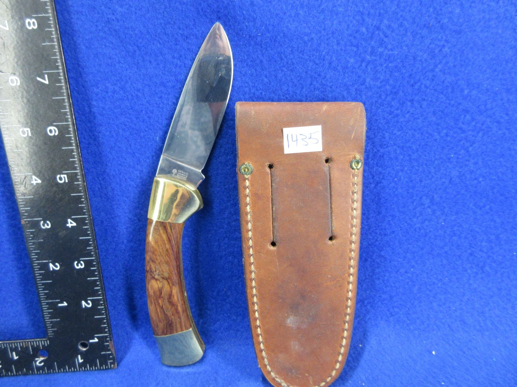 Folding Blade Locking Knife with Leather Sheath - Boker Rostfrei Solingen Stainless - Marked Hardware Industry 1979 - 3" Blade