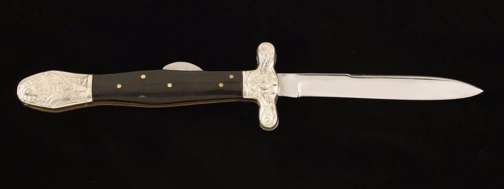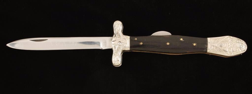 Given as a door prize at the Antique Bowie Club Meeting in 1997. Wooden handle marked Liberty and Union. And marked ABKA 97 on blade