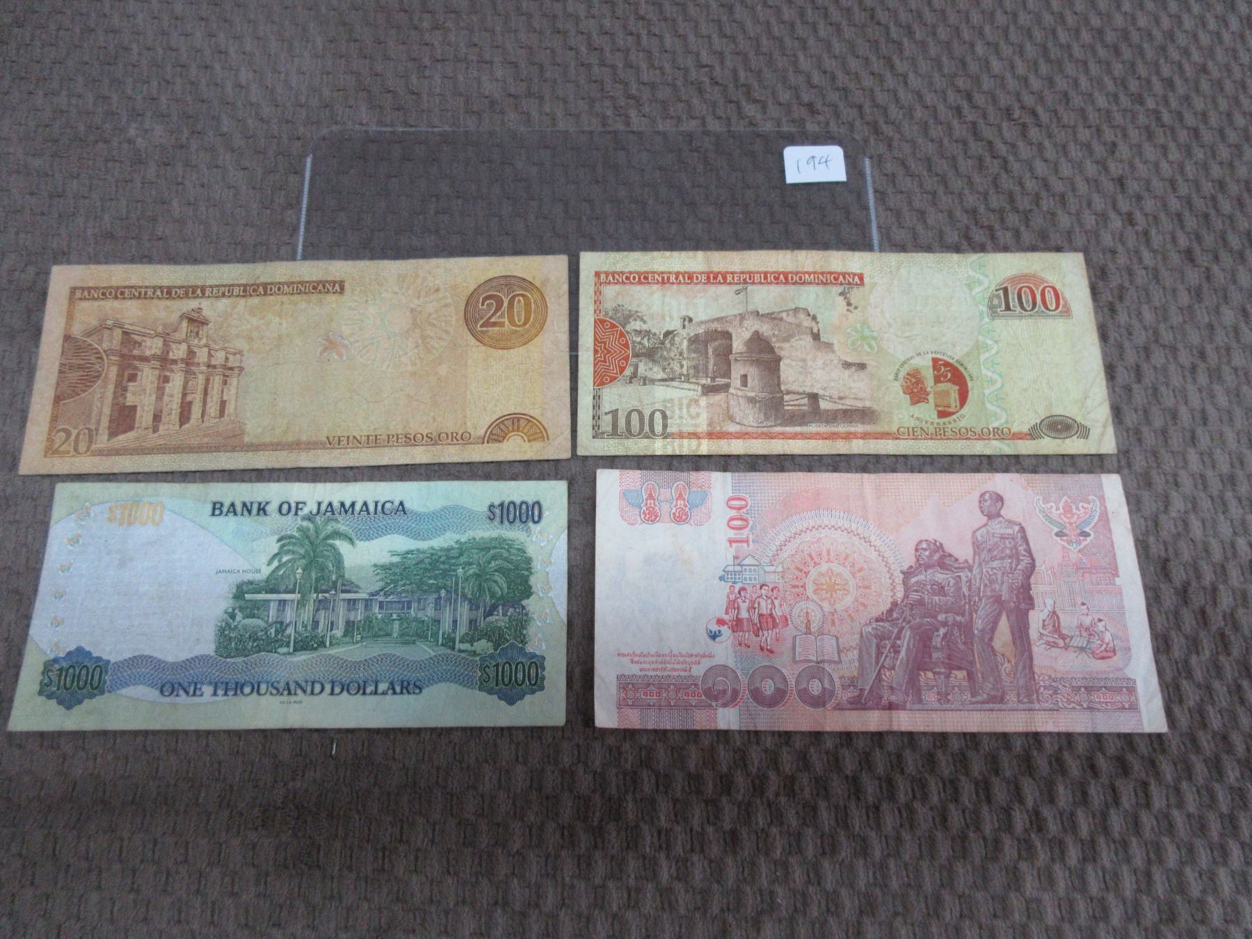 Foreign Currency - Jamaica 1000 Dollars, Dominicana 20 Pesos, Thailand 100 Baht & Dominicana 100 Pesos