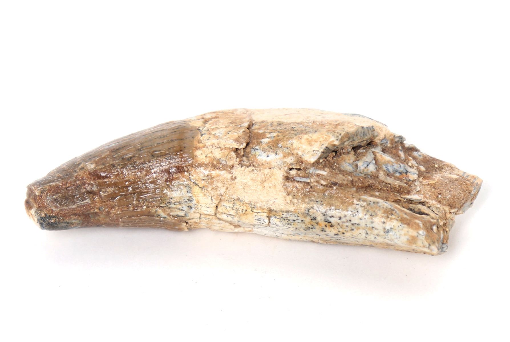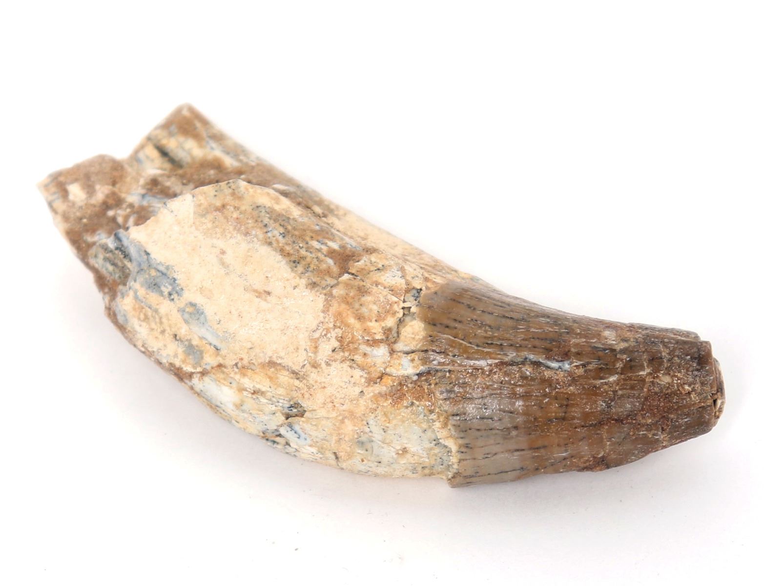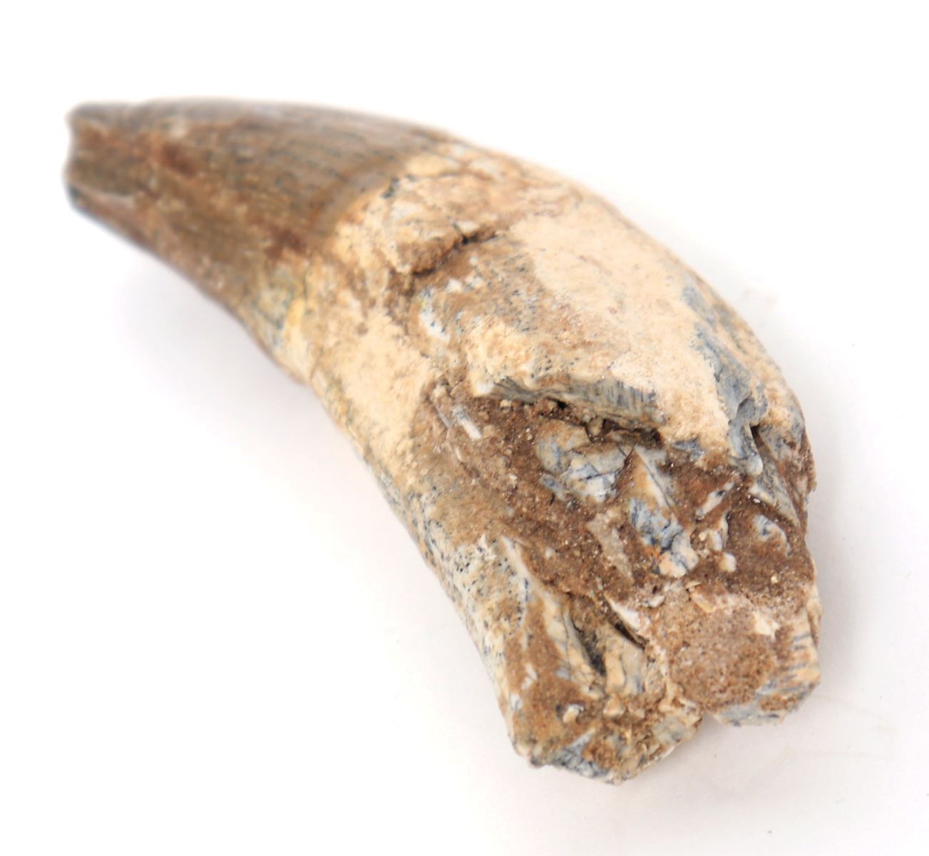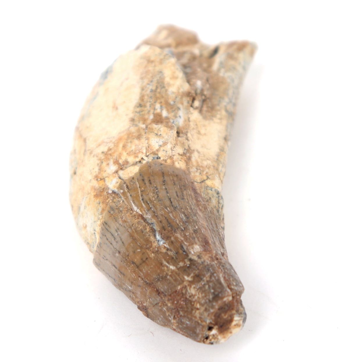 Late Cretaceous period, about 100 to 94 million years ago. Intimidatingly large Spinosaurus claw, fossilized from over time to dull the sharpness it once had. This is only a section of the entire claw and would have measured close to four and a half inches in deadly length. Size 3 3/4" L. Condition: Well preserved condition.