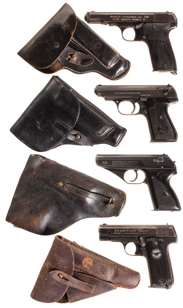 Four European Semi-Automatic Pistols with Nazi Markings and Holsters -A) MAB Model D Pistol