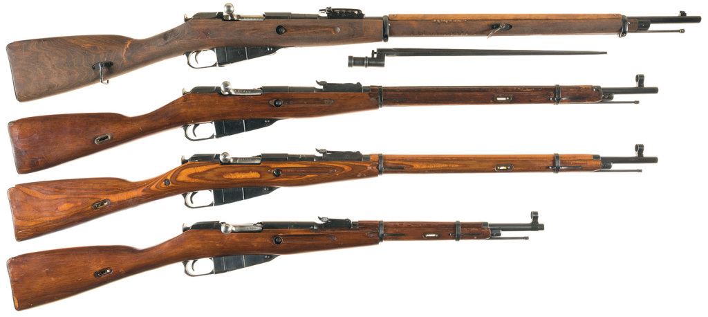 Four Russian Military Longarms -A) Imperial Russian Mosin Nagant Model 1891 Rifle with Bayonet