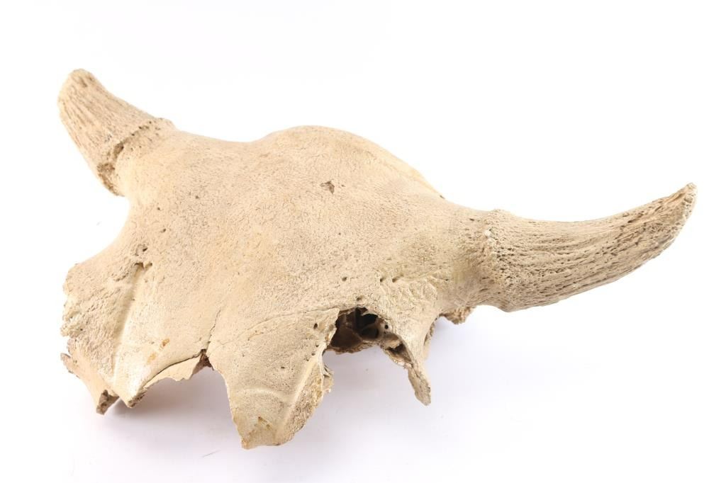 And trail skull for display from James Wells "Buffalo Hunt" Collection. Relic in poor conditions. Decorative use for displays.