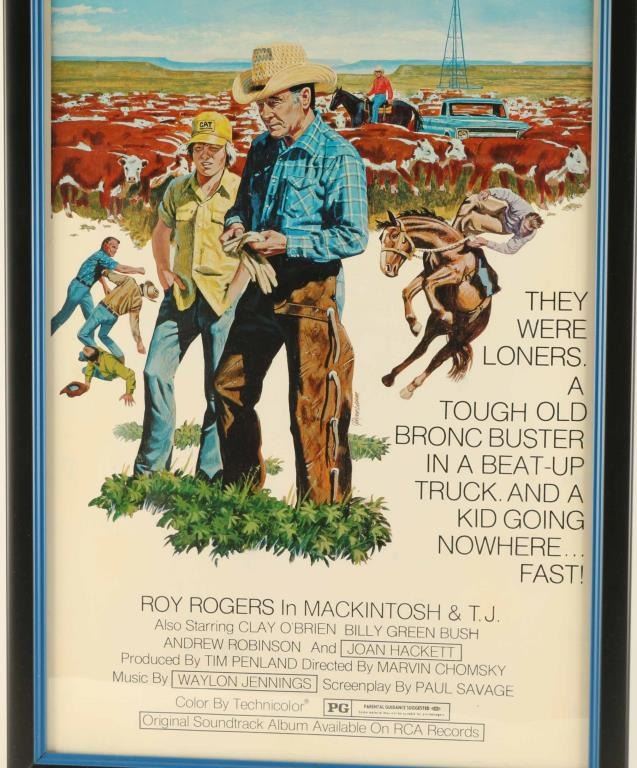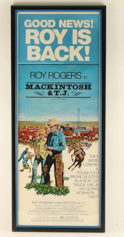 from Mackintosh & TJ Roy Rogers' last movie. Measures 36" x 14" in black frame.