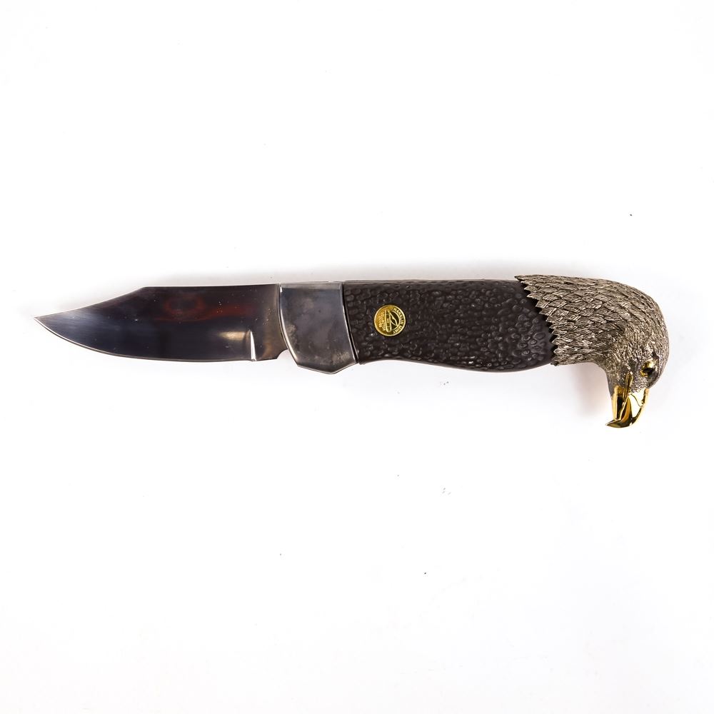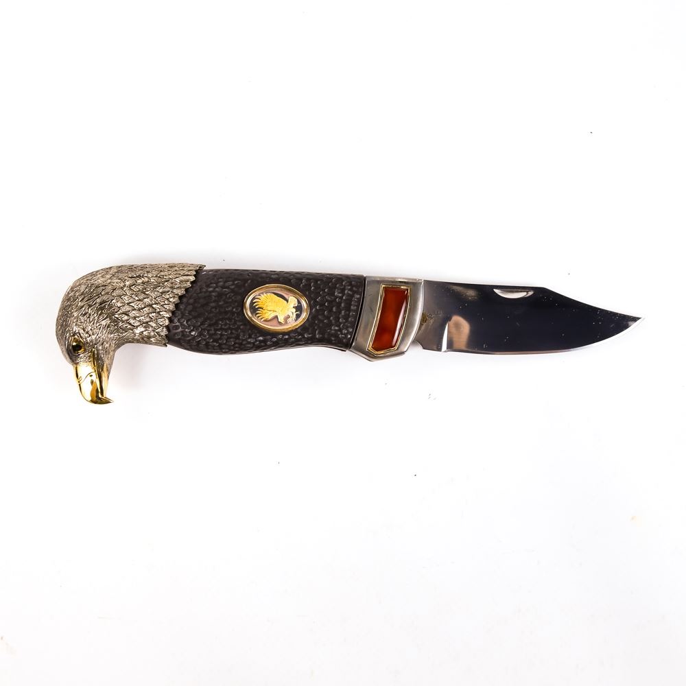 Franklin Mint Collector Series Bald Eagle Folding Knife. Hard to find large Eagle head design. Knife is Brand new with Zipper storage pouch. See Photos.