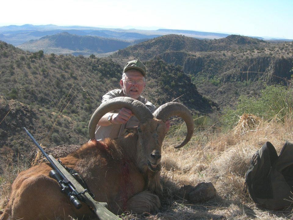 This is a 5-day hunt for free ranging Aoudad Ewes for (1-4 hunters) in West Texas with Ed Tibljas and Triangle T Outfitters. The hunters will experience the spectacular mountains of West Texas – this is a true sheep hunt; and the hunters can collectively harvest up to 10x Aoudad Ewes. Along the way the hunters will very likely encounter a few of the massive Aoudad Rams (often 30+) that Triangle T Outfitters is famous for. Ed will allow the hunters on this trip to upgrade and take an Aoudad Ram for a $5,000 Trophy Fee. Included are all guiding, meals, lodging, airport pickup and return from Midland/Odessa (MAF), and caping/field processing of Trophy Aoudad. Not included are special 5-day Texas Hunting License ~$50, personal items, and before/after hunt expenses.