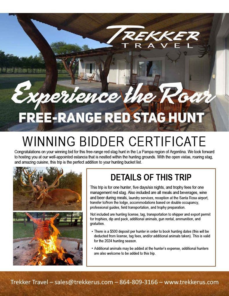 It is the bidder’s responsibility to 1) contact the outfitter within 30 days after this event, 2) obtain proper licenses and permits and 3) arrange times and dates with the outfitter unless otherwise stated.