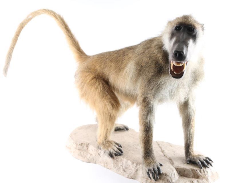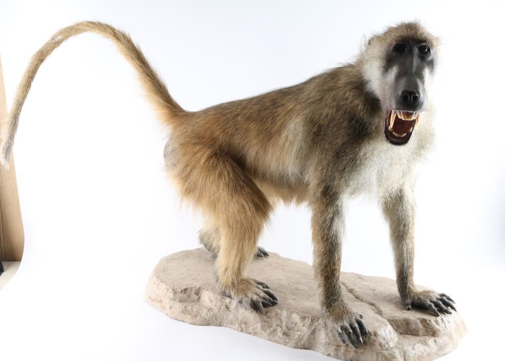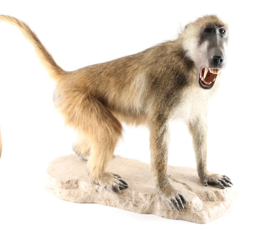 on faux rock base. Measures 27" tall x 43" from tail to nose. Good condition, small cracks around nails and butt. Heavy - large - Buyer to Arrange Pickup.