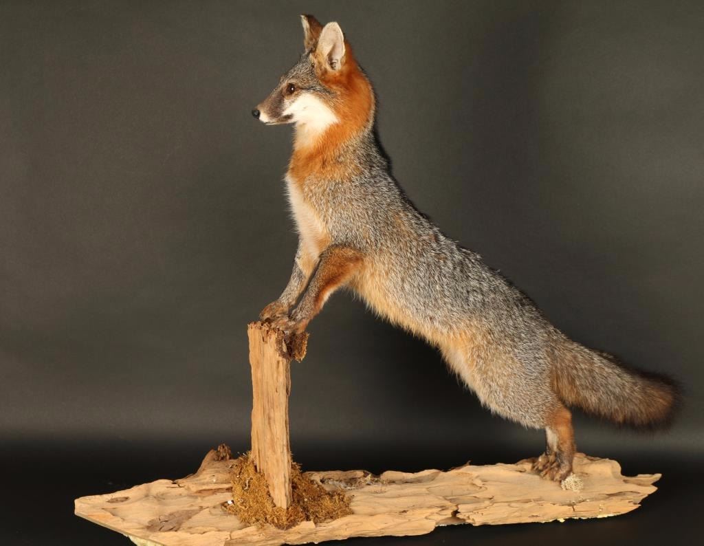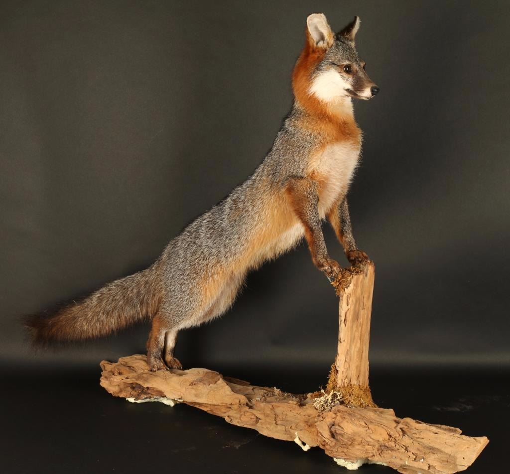 Standing on log, measures 37" from tail to nose. Base is 37" long x 29"h. Very good condition.