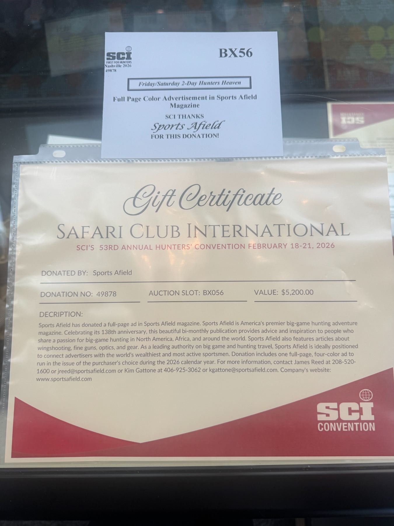 Sports Afield has donated a full-page ad in Sports Afield magazine.